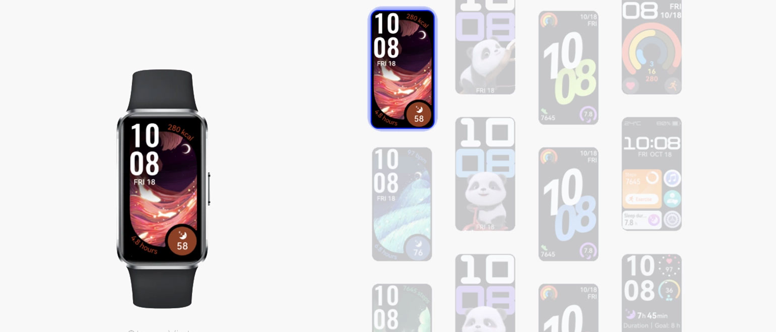 Μετάτρεψε το band σου σε ένα διαχρονικό ρολόι με τα Huahua the Panda, Starry Vista, Joy Spring, Super Watch, Gallery ή Style με θέμα τα συναισθήματα. Ανέβασε τη μόδα του καρπού σου στο επόμενο επίπεδο με προσαρμόσιμα στυλ, χαρακτηριστικά και Always on Display (AOD) για να κάνεις κάθε σχέδιο μοναδικά δικό σου.