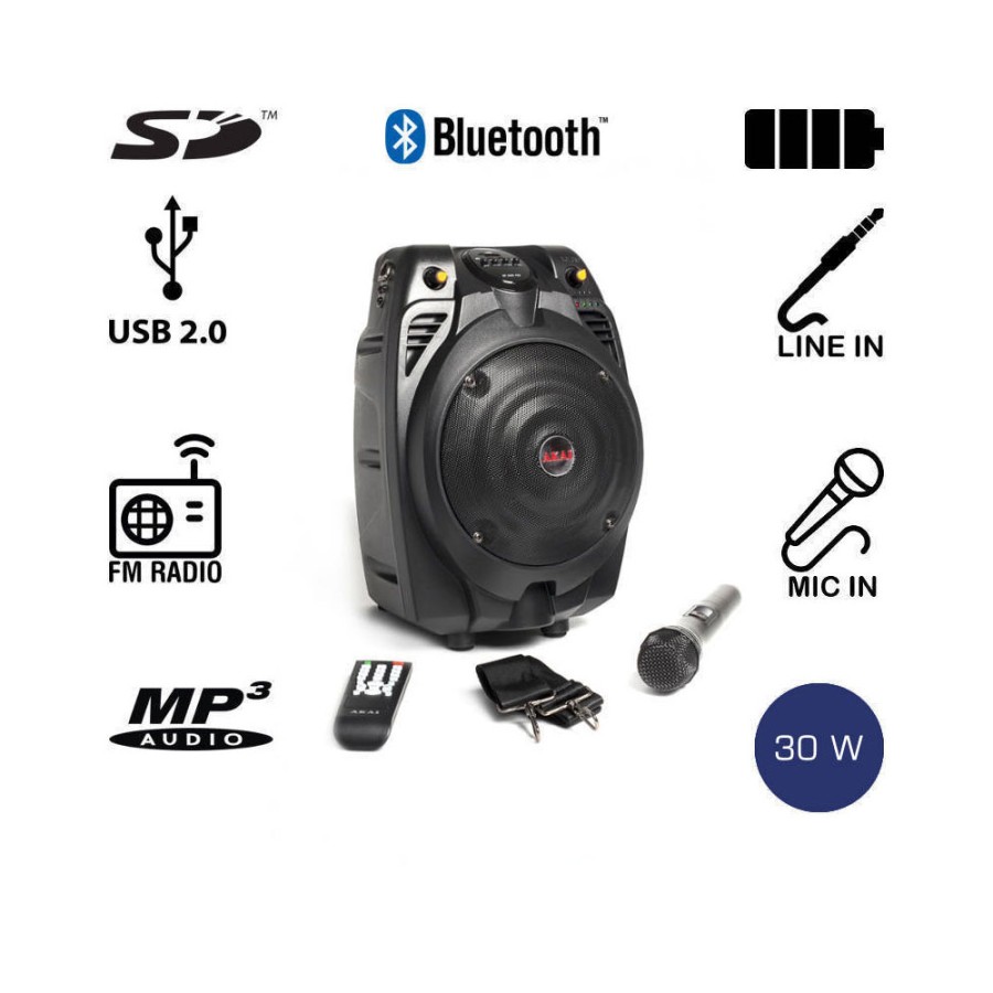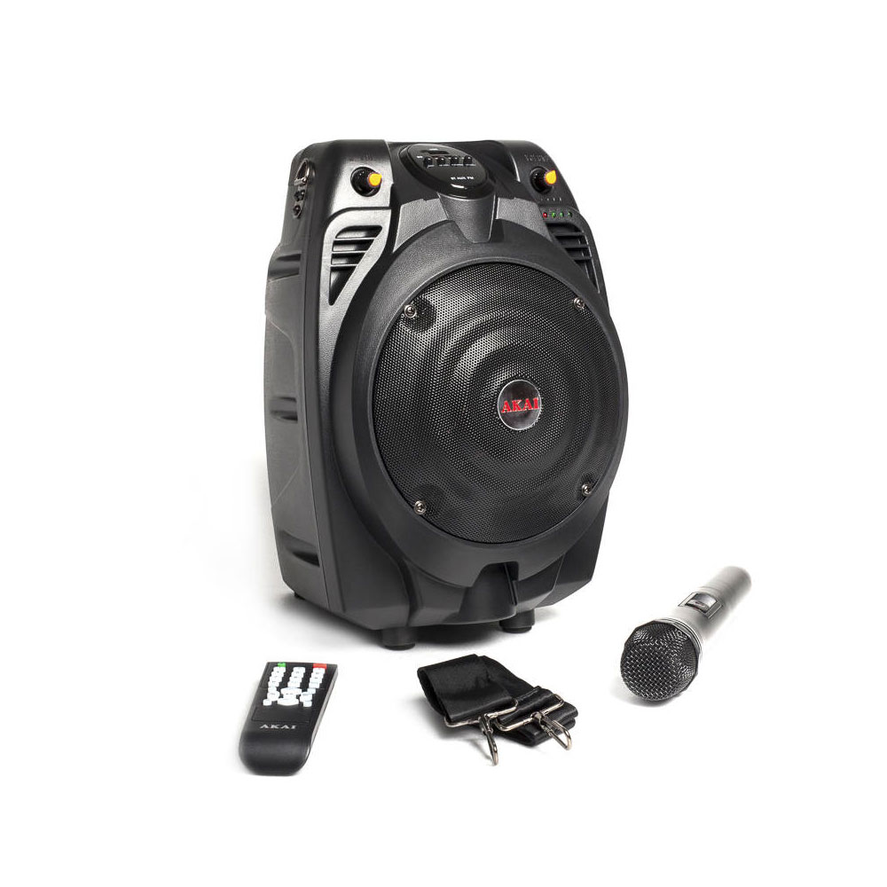 AKAI SS022A-X6 φορητό ηχείο με ενισχυτή και μικρόφωνο, σύνδεση Bluetooth, ραδιόφωνο, ασύρματο μικρόφωνο, USB, είσοδο RCA και κάρτα SD.