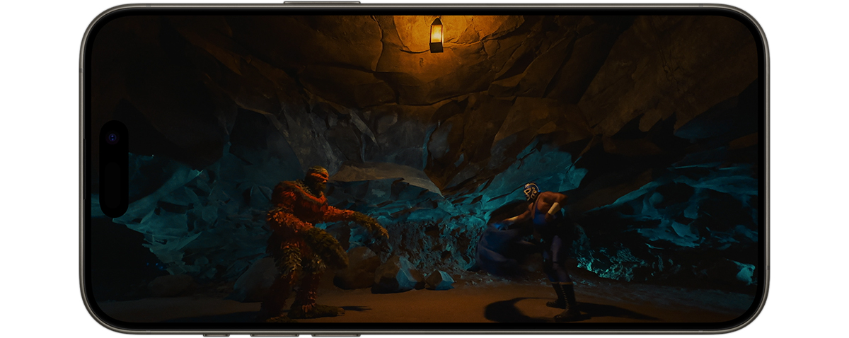 Ένας επεξεργαστής κατηγορίας Pro δημιουργεί απίστευτα ζωντανή εμπειρία στα παιχνίδια για τα κινητά, με πλούσια περιβάλλοντα και ρεαλιστικούς χαρακτήρες. Ο A17 Pro είναι επίσης απίστευτα αποδοτικός και βοηθά στην παροχή εκπληκτικής διάρκειας μπαταρίας όλη την ημέρα.(3)