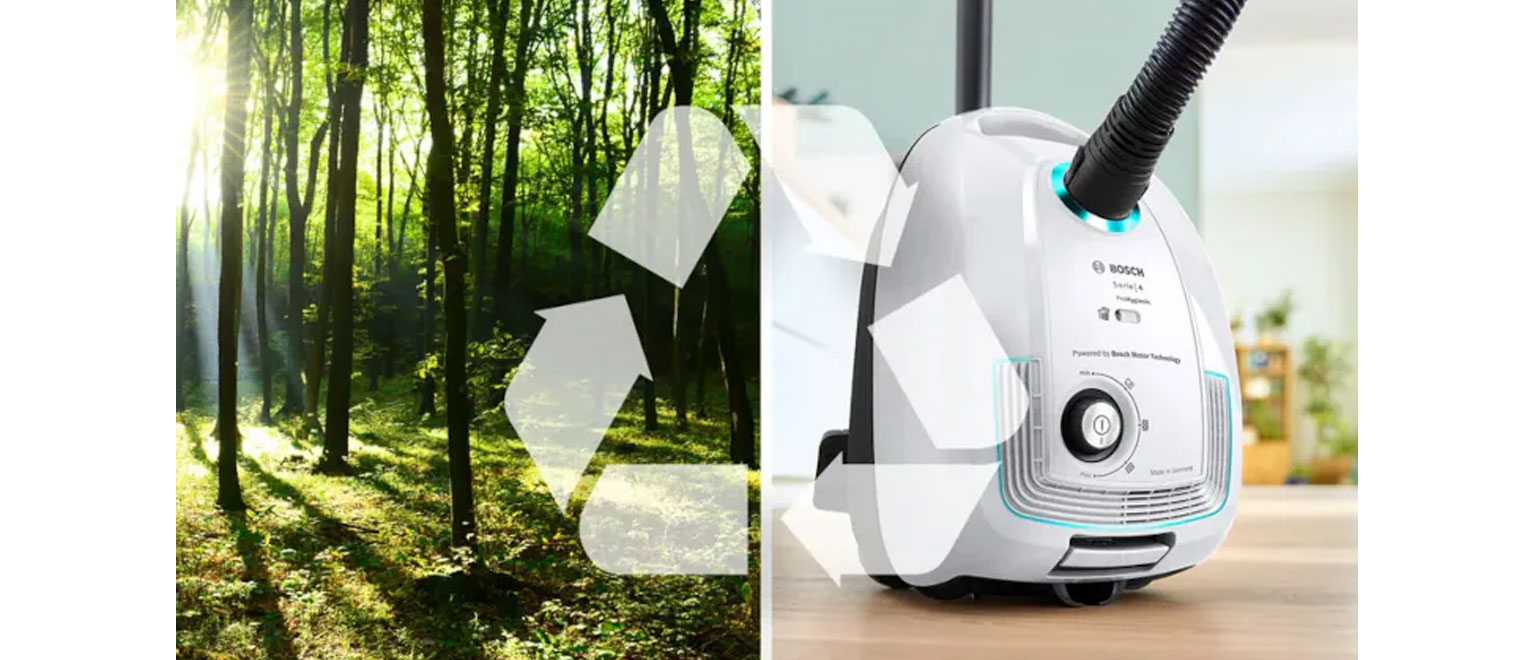 Η Bosch, πιστή στη δέσμευση για βιωσιμότητα, αναπτύσσει συσκευές που εξοικονομούν φυσικούς πόρους με σεβασμό στο περιβάλλον. Η συγκεκριμένη σκούπα είναι κατασκευασμένη από 30% ανακυκλωμένο πλαστικό, ενώ η συσκευασία της από 95% ανακυκλωμένο χαρτί με κομποστοποιημένο και ανακυκλώσιμο υλικό. Χάρη στον γερμανικό Bosch κινητήρα, η μεγάλη διάρκεια ζωής της είναι εγγυημένη.