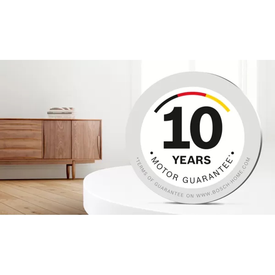 Συνεχώς ισχυρή απόδοση με τις σκούπες της Bosch: Σχεδιάζουμε και παράγουμε τα μοτέρ υψηλής απόδοσης, εδώ και 65 χρόνια στη Γερμανία. Αυτό που περιμένουμε από τις σκούπες μας είναι να αποδίδουν εξαιρετικά και σε βάθος χρόνου, γι'αυτό προσφέρουμε 10 χρόνια εγγύηση στα μοτέρ*. *Όροι εγγύησης στο www.bosch-home.gr