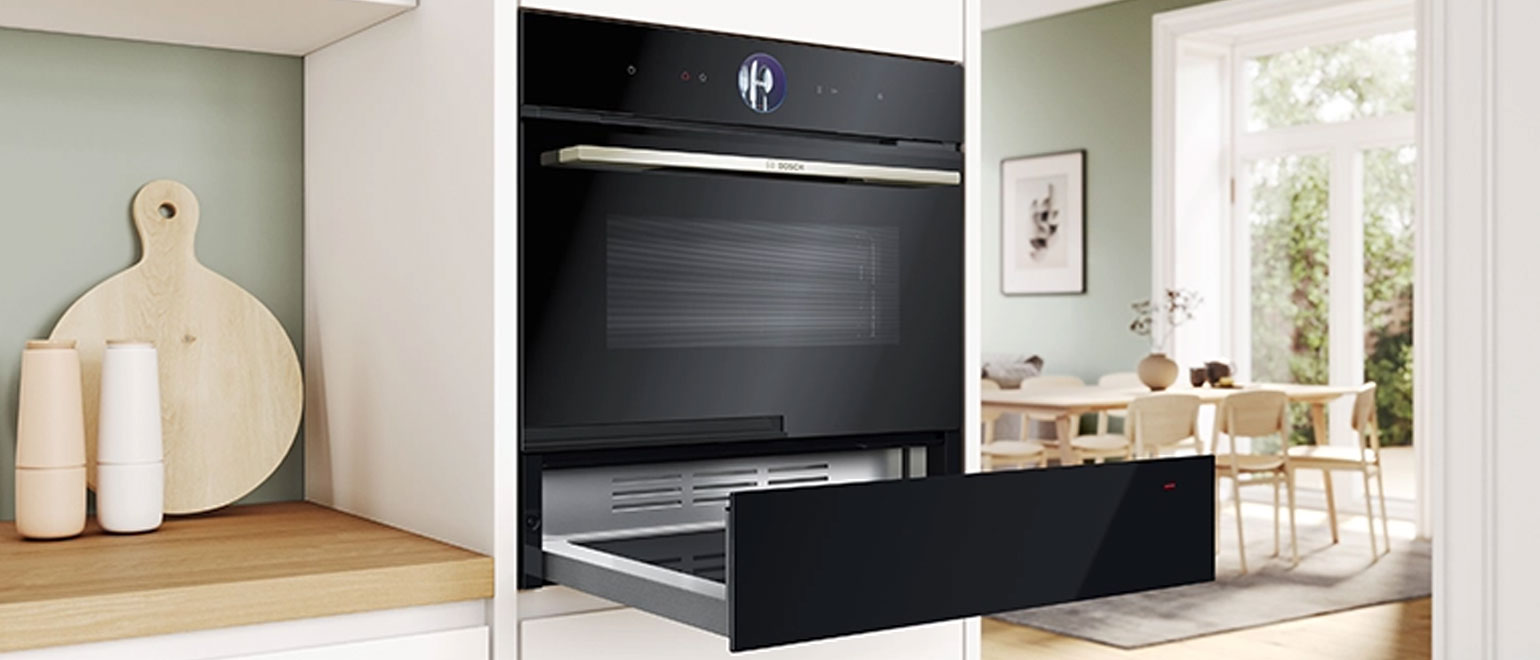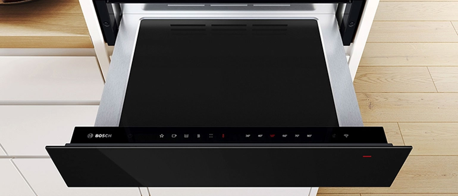 Bosch BIC7101B1 Εντοιχιζόμενο Θερμαινόμενο Συρτάρι 14 cm Μαύρο με πρόγραμμα "Αργό μαγείρεμα" για να μαγειρέψετε αργά και απαλά κομμάτια τηγανισμένου και τρυφερού κρέατος, πουλερικά ή λαχανικά.