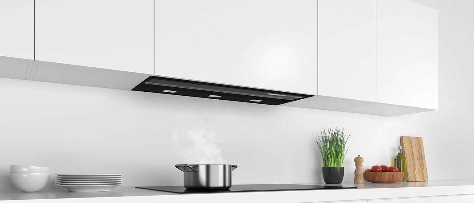 Προτιμάς το minimal design; Ο απορροφητήρας εντοιχίζεται τέλεια μέσα στο ντουλάπι πάνω από την εστία και είναι σχεδόν αόρατος όταν δεν τον λειτουργείς. Επίσης, το γυάλινο πάνελ ελέγχου του μπορεί και αυτό να κρυφτεί κάτω από τον απορροφητήρα όταν δεν χρησιμοποιείται, ώστε να μην φαίνεται.