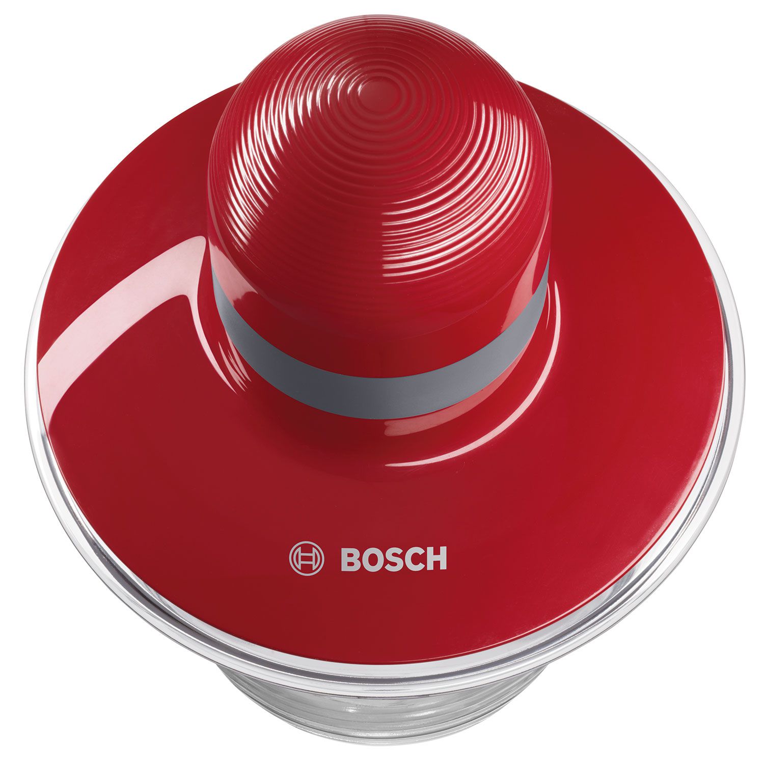 Bosch MMR08R2 Πολυκόφτης Κόκκινο με ισχύ 400W, ανοξείδωτο μαχαίρι που πλένεται στο πλυντήριο πιάτων, δίσκο χτυπήματος για ασπράδια αυγών ή κρέμας, πλαστικό μπωλ 800ml και βαθμίδα στιγμιαίας λειτουργίας.