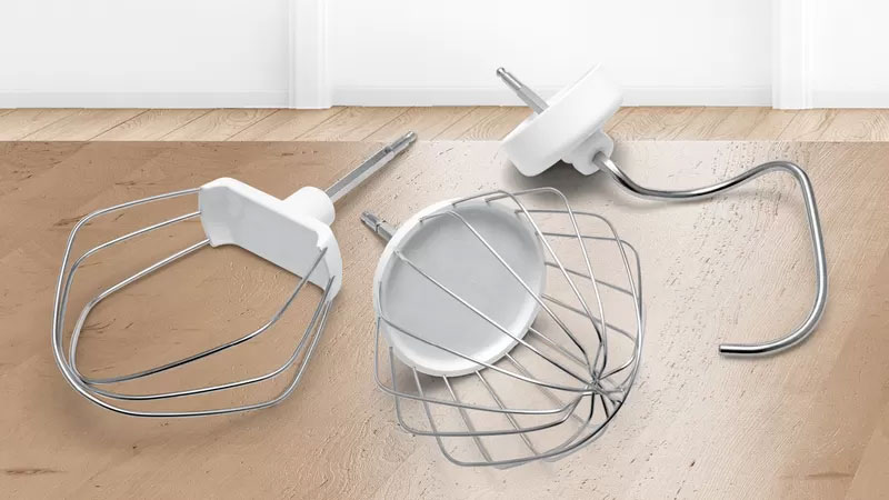 Το σετ εξαρτημάτων ζαχαροπλαστικής καλύπτει ένα μεγάλο εύρος χρήσεων και εγγυάται τέλεια αποτελέσματα. Με αυτά τα εξαρτήματα μπορείτε να ετοιμάσετε αφράτη μαρέγκα, πλούσια σαντιγί, αεράτα κέικ ή και σπιτικό ψωμί για όλη την οικογένεια. Τα εξαρτήματα μπορούν να πλυνθούν στο πλυντήριο πιάτων.Πρακτικό τύλιγμα καλωδίου.