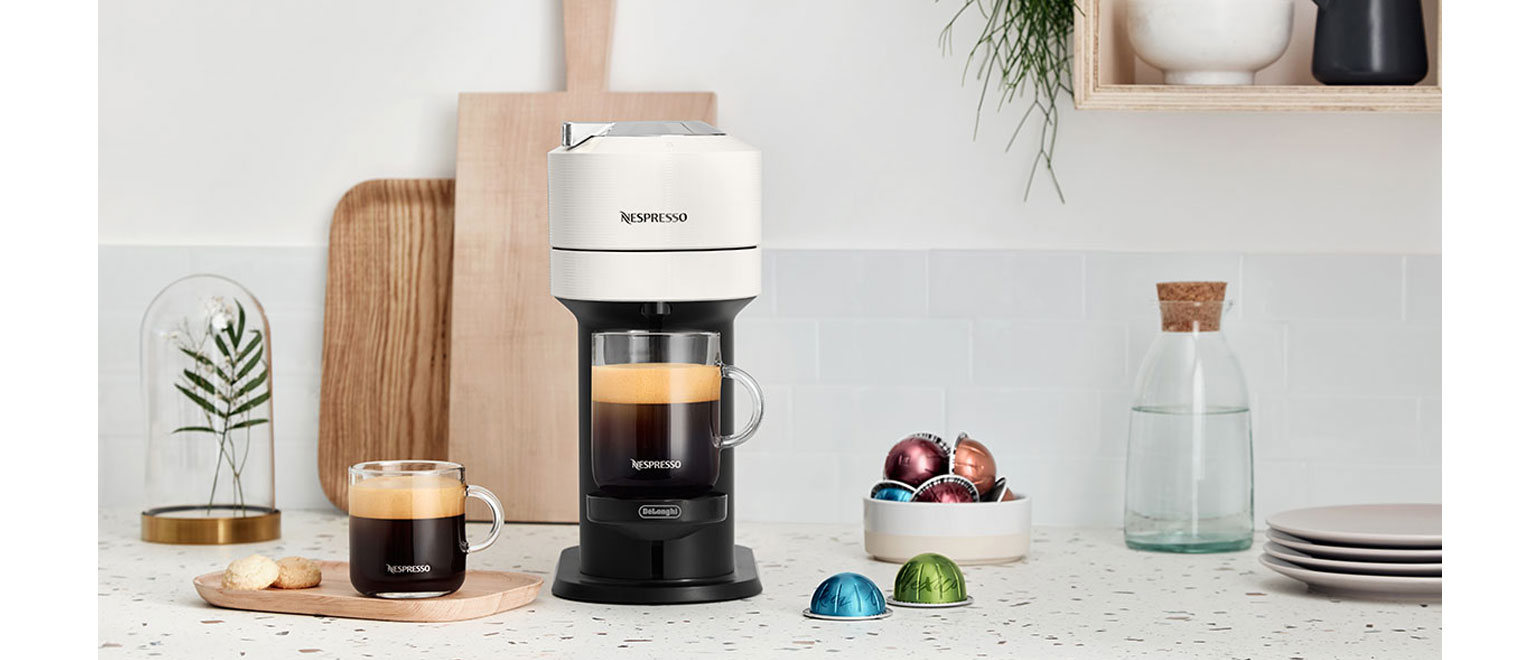 Με μόνο ένα κουμπί, η μηχανή καφέ Vertuo Next της Nespresso σε μεταφέρει σε έναν κόσμο γεμάτο αναρίθμητες δυνατότητες στην εκχύλιση του καφέ. Ένδωσε σε έναν πληθωρικό Carafe ή απόλαυσε τους εκρηκτικούς Espresso. Κάθε ανακυκλώσιμη κάψουλα καφέ Vertuo εξάγεται αυτόματα με το άνοιγμα της κεφαλής. Και μπορείς να προσαρμόσεις το στήριγμα της κούπας σε τρεις θέσεις ή ακόμη και να το αφαιρέσεις τελείως.