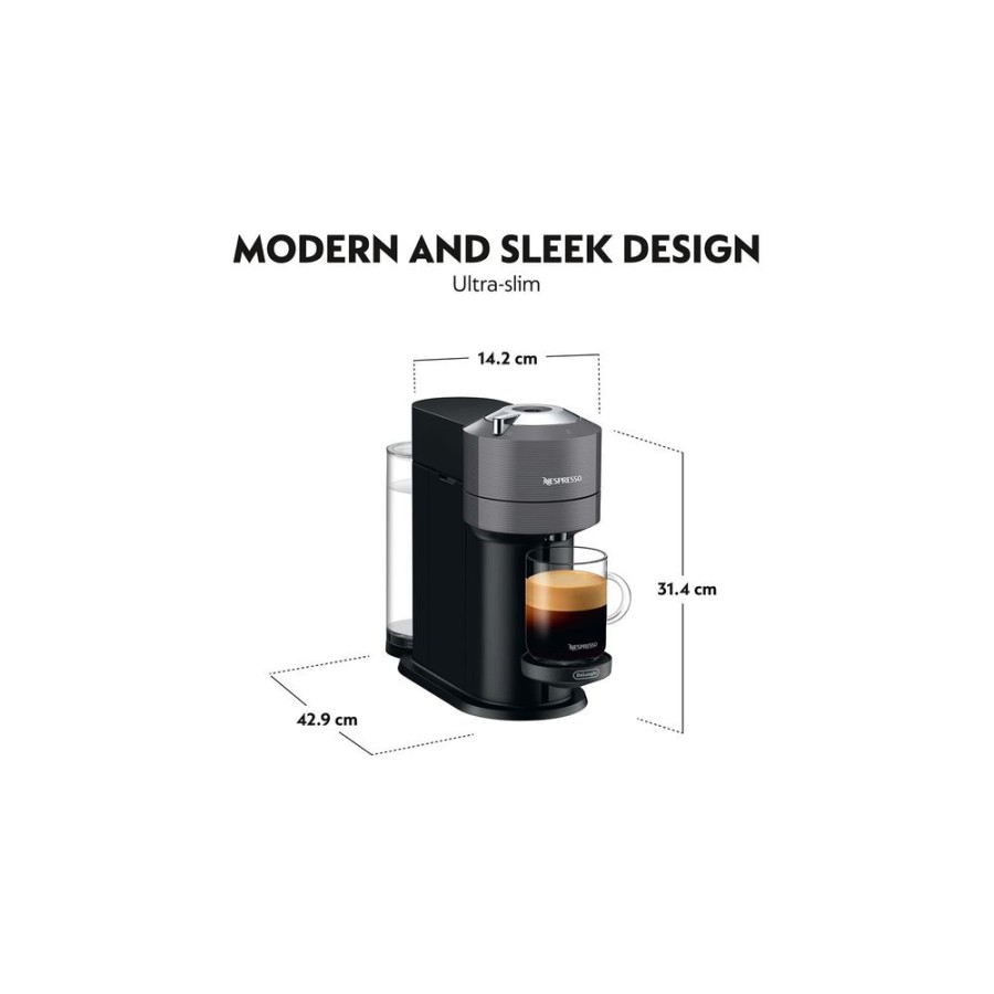 Delonghi ENV120.GY Vertuo Next Μηχανή Nespresso, περικλείει όλο το εύρος των ειδών καφέ με πέντε μεγέθη φλιτζανιού, όλα με το πάτημα ενός κουμπιού.