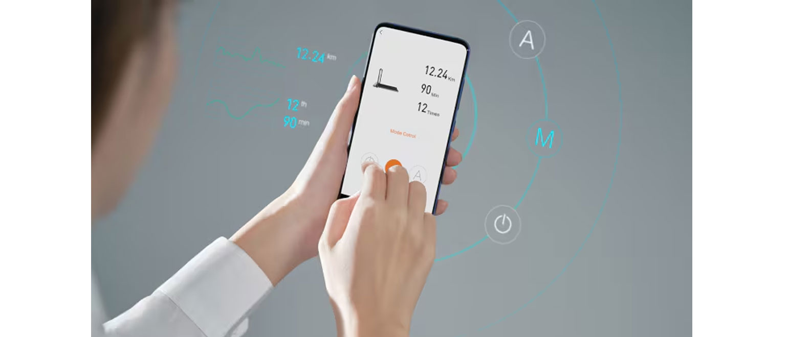 Ο έξυπνος σχεδιασμός επιτρέπει απλή λειτουργία μέσω τριών τρόπων ελέγχου. Στη χειροκίνητη λειτουργία (M mode), η ταχύτητα ρυθμίζεται με το τηλεχειριστήριο. Στην αυτόματη λειτουργία (A mode), η ταχύτητα προσαρμόζεται ανάλογα με τη θέση του βήματος. Επιπλέον, η εφαρμογή KS Fit App προσφέρει άμεσο έλεγχο και επιλογή λειτουργιών για ευέλικτη εμπειρία χρήσης.