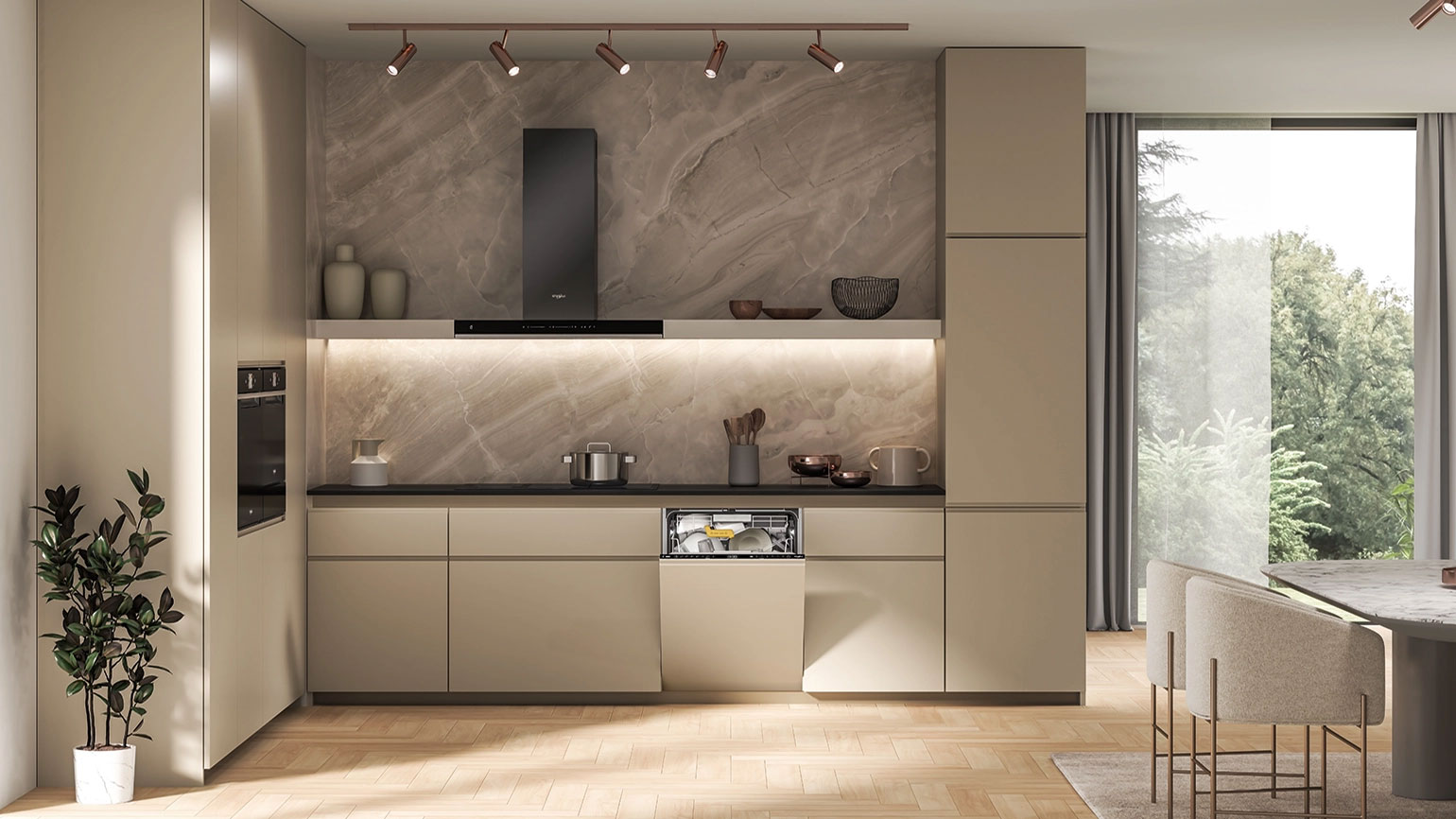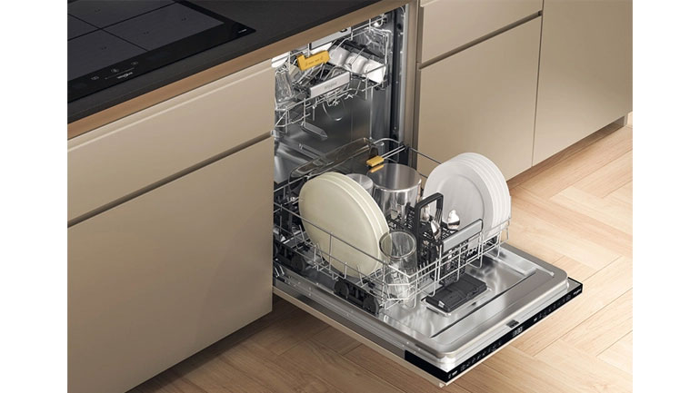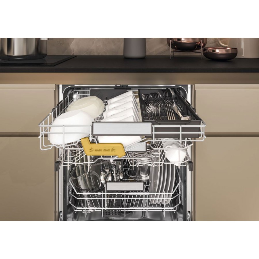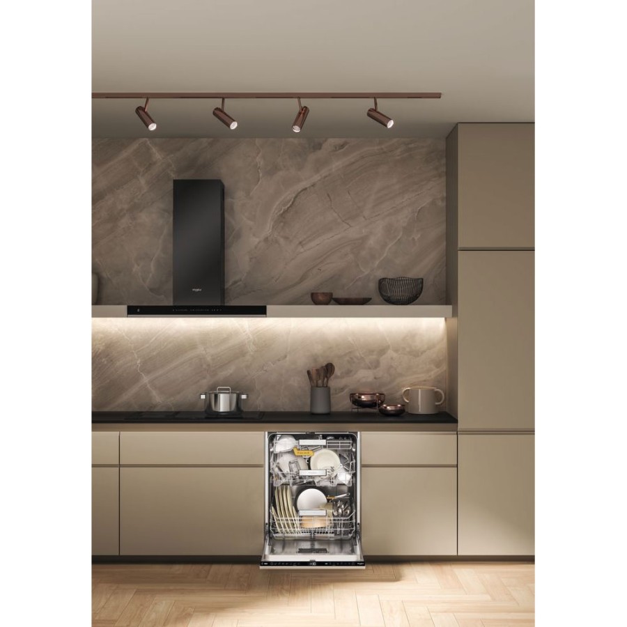 Εντοιχιζόμενο πλυντήριο πιάτων Whirlpool W8I HF58 TU χωρητικότητας 14 σερβίτσιων, με τεχνολογία 6ης αίσθησης για αυτόματη ρύθμιση θερμοκρασίας και χρόνου ανάλογα με το επίπεδο βρωμιάς.