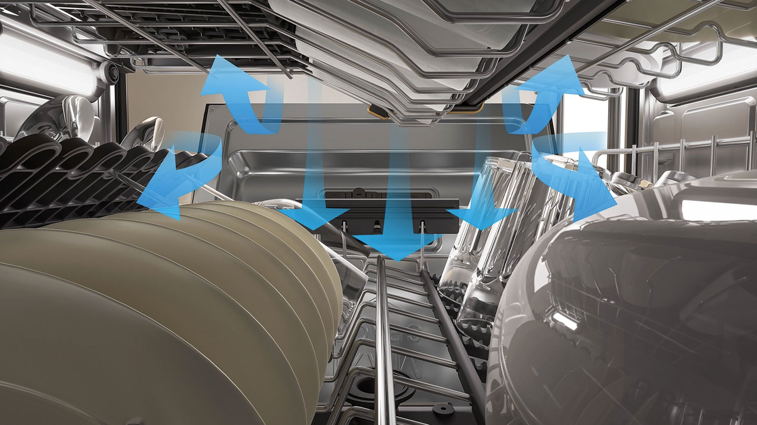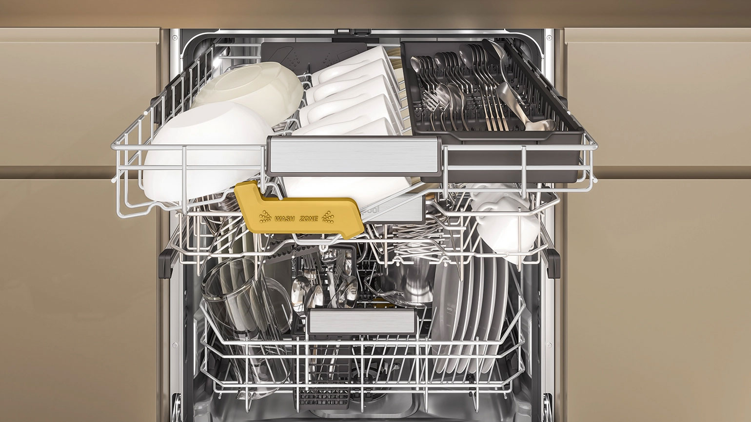 Επανάσταση στη διαχείριση χώρου! Ο μοναδικός σχεδιασμός ExtraSpace επιτρέπει την κατακόρυφη φόρτωση των μαγειρικών σκευών, στο κάτω καλάθι, παρέχοντάς σου χώρο για 10 επιπλέον πιάτα. Κέρδισε χώρο, κέρδισε χρόνο 30%!