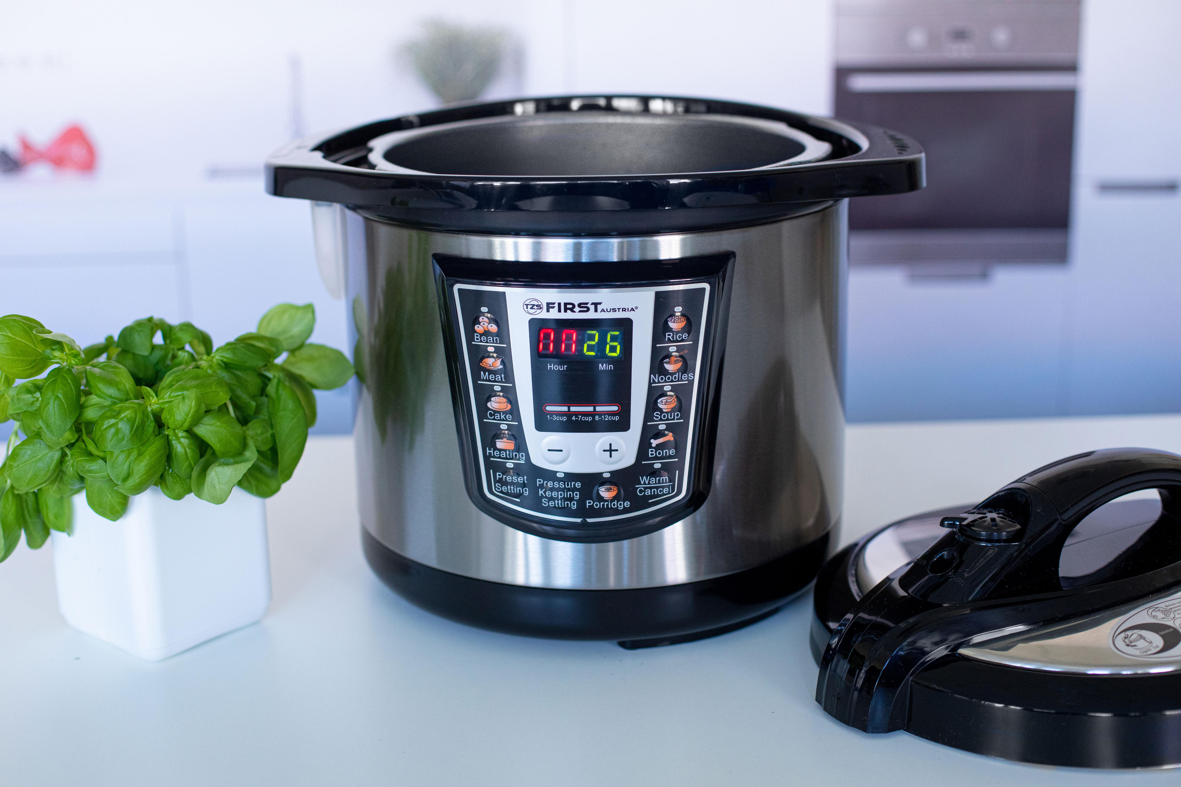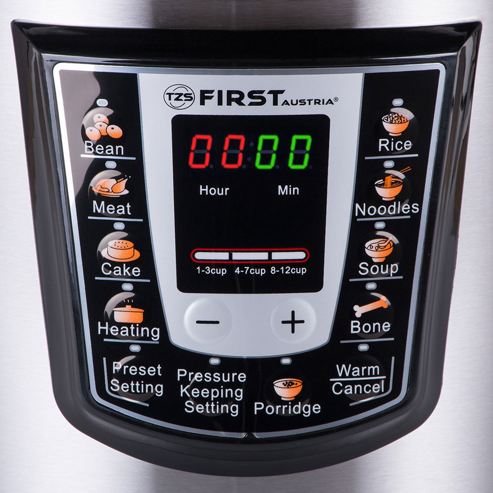 First Austria FA-5130 Πολυμάγειρας με 8 διαφορετικά προγράμματα για όσπρια, κρέας, κέικ, θέρμανση, ρύζι, ζυμαρικά, σούμα και παρασκευής ζωμού.