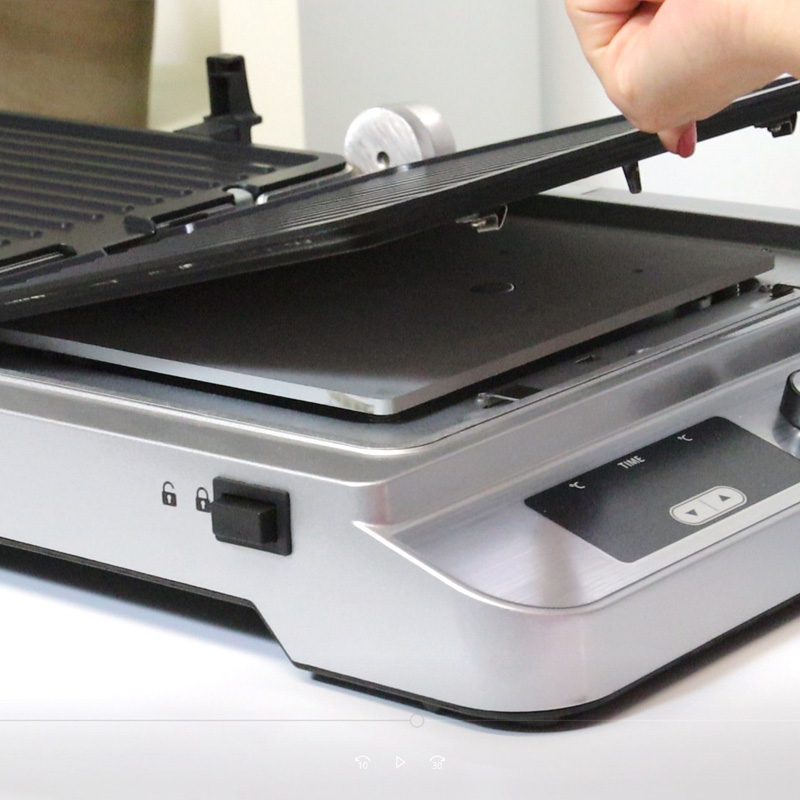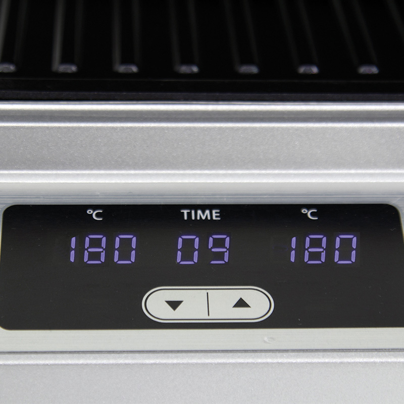 Χάρη στην ακριβή ρύθμιση της θερμοκρασίας επιτυγχάνεις ομοιόμορφο ψήσιμο, στους βαθμούς που απαιτεί κάθε τροφή για το σωστό και υγιεινό ψήσιμο. Επίσης έχεις τη δυνατότητα να ρυθμίσεις σε διαφορετική θερμοκρασία την πάνω και την κάτω πλάκα.Θέσεις ψησίματος