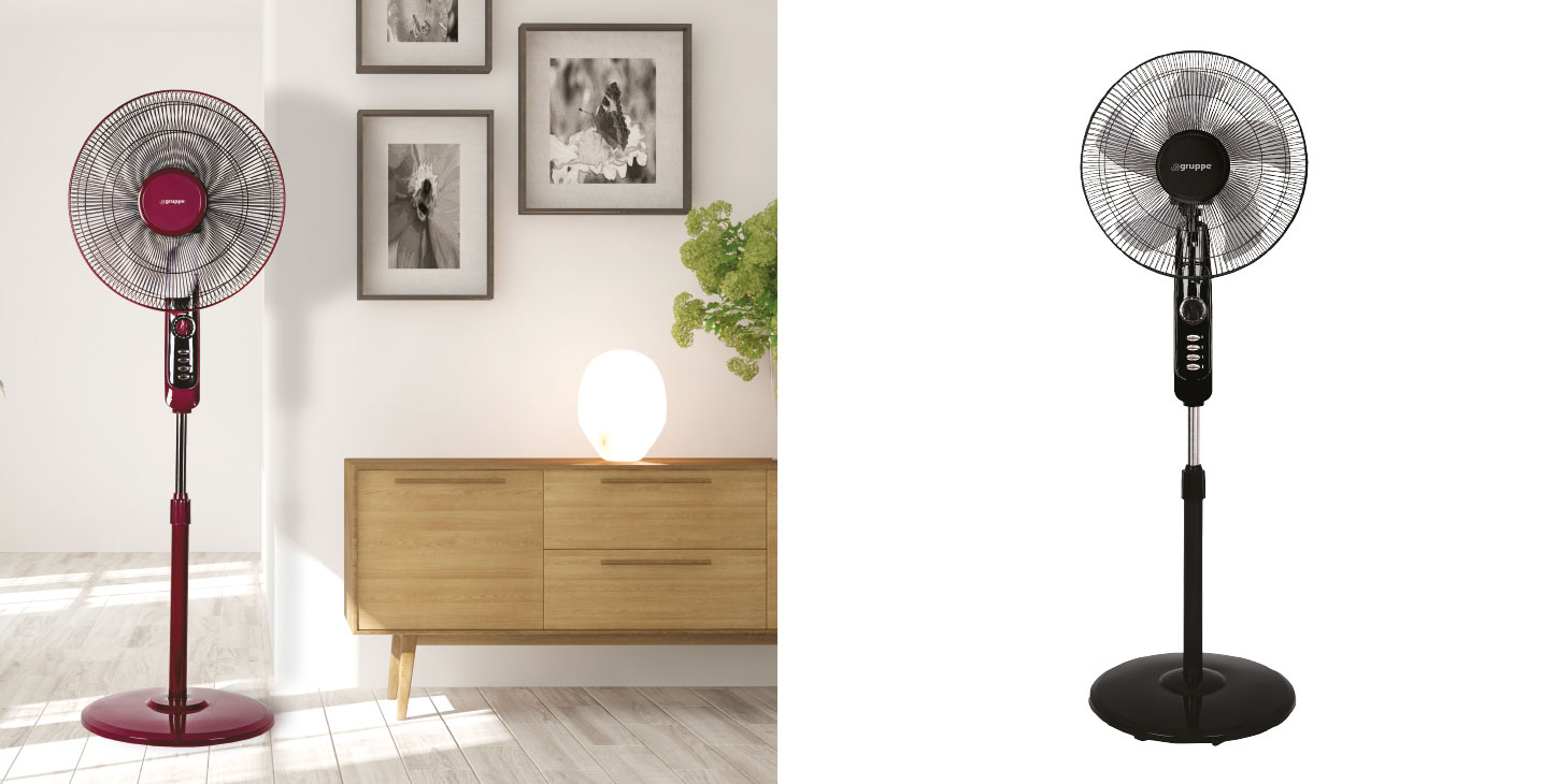Gruppe FS-40-827 ανεμιστήρας ορθοστάτης 45W, διαμέτρου 40cm με 3 ταχύτητες μέσα από τις οποίες μπορείτε να επιλέξετε την κατάλληλη για να επιτύχετε την επιθυμητή θερμοκρασία στο χώρο σας.