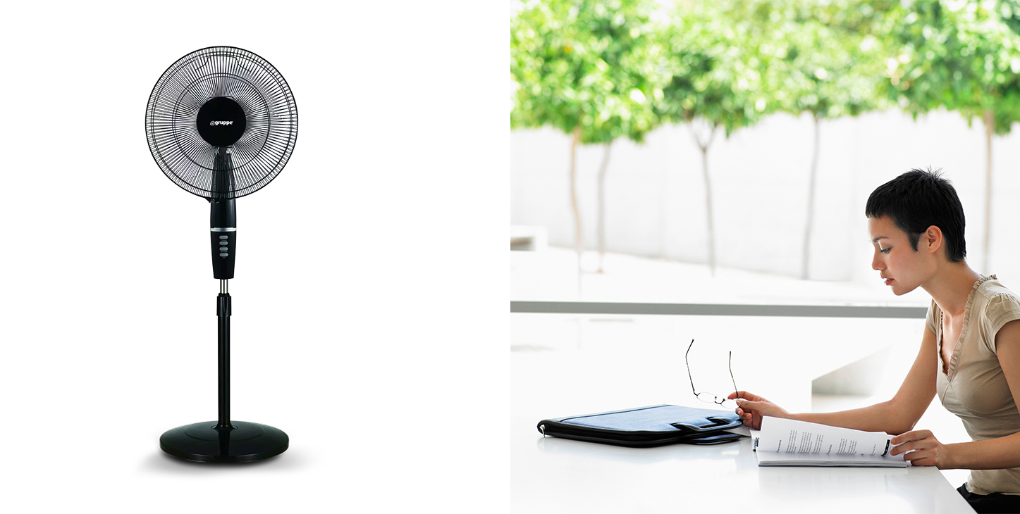 Ανεμιστήρας δαπέδου Gruppe FS40-413 ισχύος 60 Watt, με μοτέρ με πηνίο χαλκό, αθόρυβη λειτουργία και πλαστική φτερωτή 5 λεπίδων.
