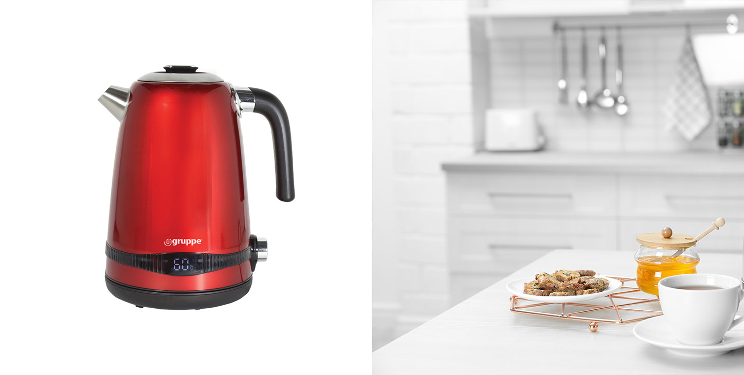 Gruppe HHB8702D Βραστήρας Κόκκινος με λειτουργία boil dry protection και αυτόματη απενεργοποίηση κατά τον βρασμό.