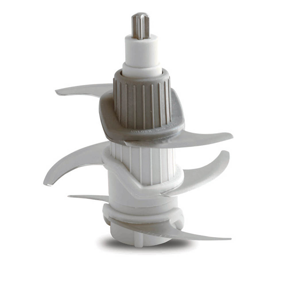 Εφοδιασμένο με 6 λεπίδες και κονέκτορα με μεταλλικό άξονα, ικανό να πολτοποιεί, να τεμαχίζει φρούτα και λαχανικά και να θρυμματίζει πάγο
