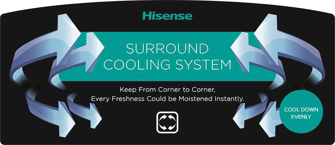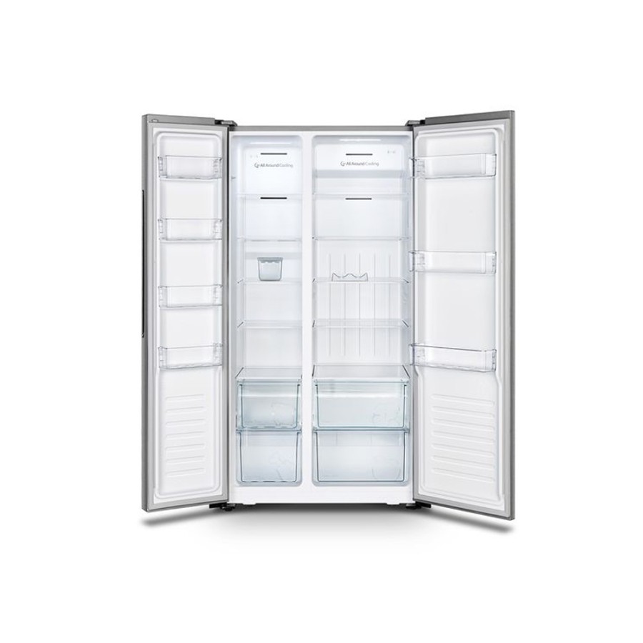 Hisense RS677N4BIE Ψυγείο Ντουλάπα Inox με μικτή χωρητικότητα 520 λίτρων και συστήματα Surround Cooling και Total No Frost, εξασφαλίζει ομοιόμορφη κατανομή ψυχρού αέρα.