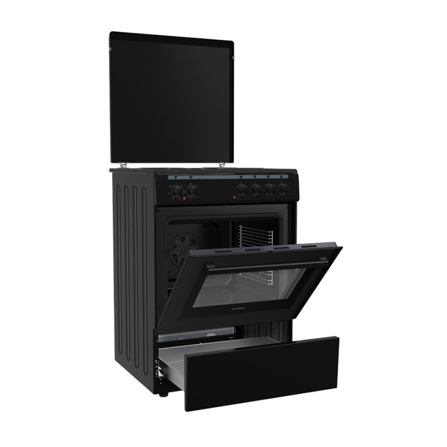 Hyundai HCMU22-6560E/BL Κουζίνα Εμαγιέ Μαύρο με πολυλειτουργικό φούρνο, χωρητικότητα φούρνου 72 λίτρα, ενεργειακή κλάση Α, 4 εμαγιέ εστίες μαγειρέματος και 6 λειτουργίες ψησίματος.