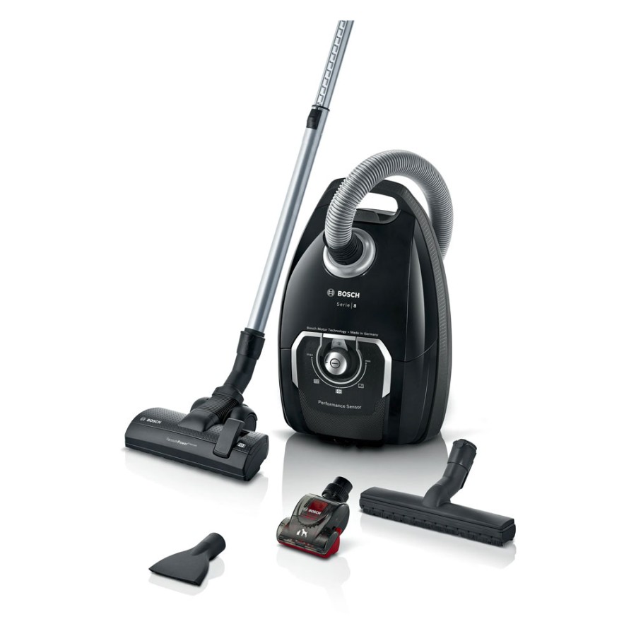 Σκούπα με σακούλα Bosch BGL8BA3S ισχύος 650W. Με σύστημα PowerProtect για μέγιστη απορροφητικότητα ακόμα και με γεμάτη σακούλα, φίλτρο HEPA, μηχανική βούρτσα για βαθύ καθαρισμό χαλιών, ακτίνα δράσης 15m, τεχνολογία Performance Sensor, καθώς και 10 χρόνια εγγύηση στο μοτέρ.