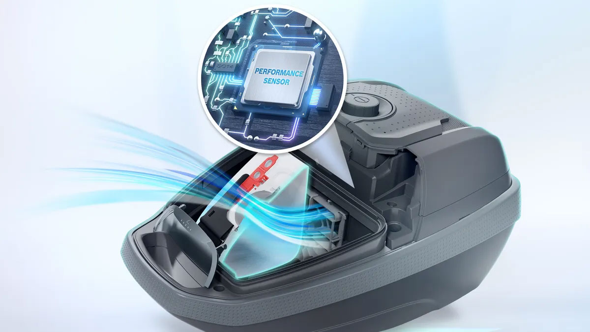 Μπορείτε να είστε σίγουροι πως η σκούπα σας καθαρίζει τέλεια, ακόμα και με γεμάτη σακούλα. Η ευφυής τεχνολογία Performance Sensor διασφαλίζει τέλειο καθαρισμό χωρίς καμία απώλεια απόδοσης. Ένας αισθητήρας πίσω από τη σακούλα και ένας ακόμα μπροστά, μετρούν διαρκώς τη ροή αέρα και προσαρμόζουν την ισχύς ανάλογα με το πόσο γεμάτη είναι η σακούλα. Με αυτό τον τρόπο απολαμβάνετε πάντα κορυφαία αποτελέσματα σκουπίσματος και λιγότερο συχνές αλλαγές σακούλας.