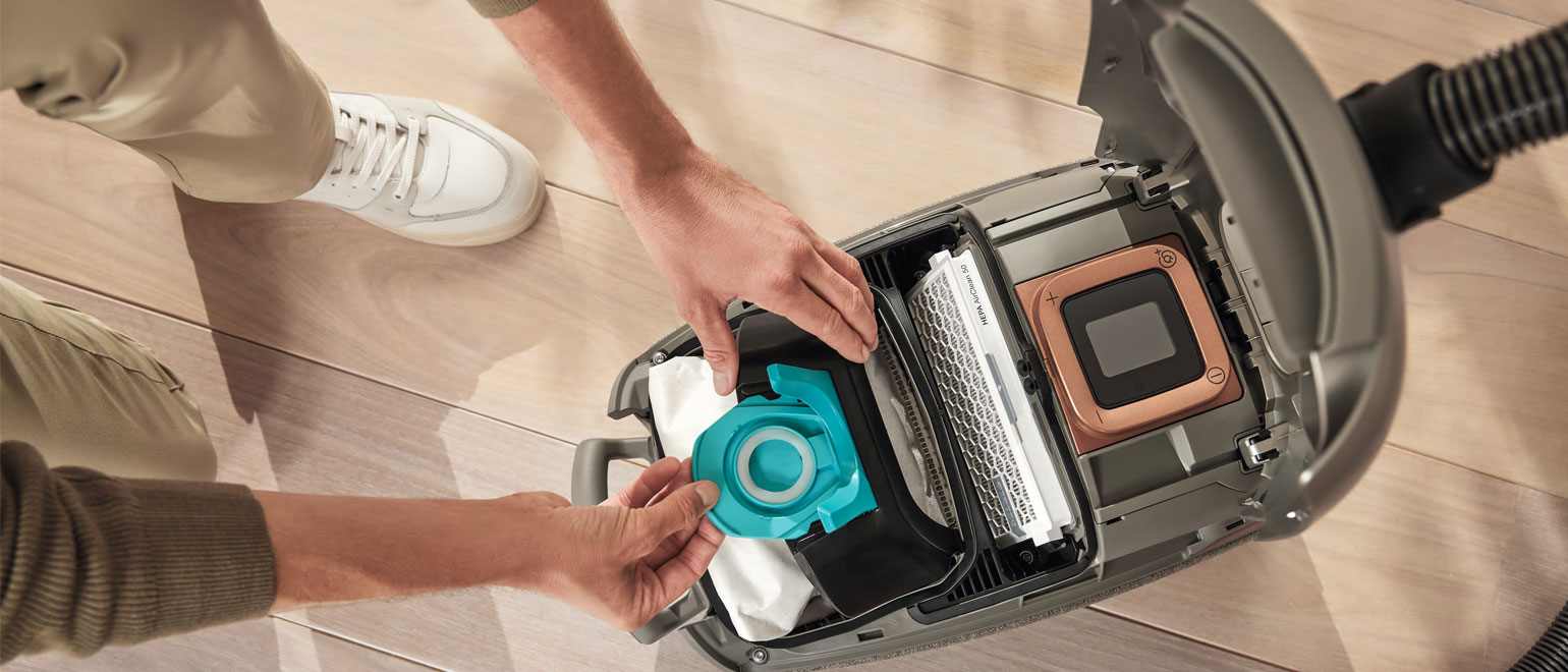 Με την πρωτοποριακή τεχνολογία φίλτρου και τις κατάλληλες σακούλες μπορείτε να απολαμβάνετε υγιεινή σε όλους τους χώρους του σπιτιού σας – με απόδοση φίλτρου 99,99%. Με το σύστημα ComfortFit είναι πανεύκολη η τοποθέτηση σακούλας και με το κλείστρο ασφαλείας η σκόνη παγιδεύεται στο εσωτερικό επιτρέποντας υγιεινή αλλαγή της σακούλας. Επιπλέον, οι νέες σακούλες ηλεκτρικής σκούπας είναι κατασκευασμένες από τουλάχιστον 80% ανακυκλωμένο υλικό.