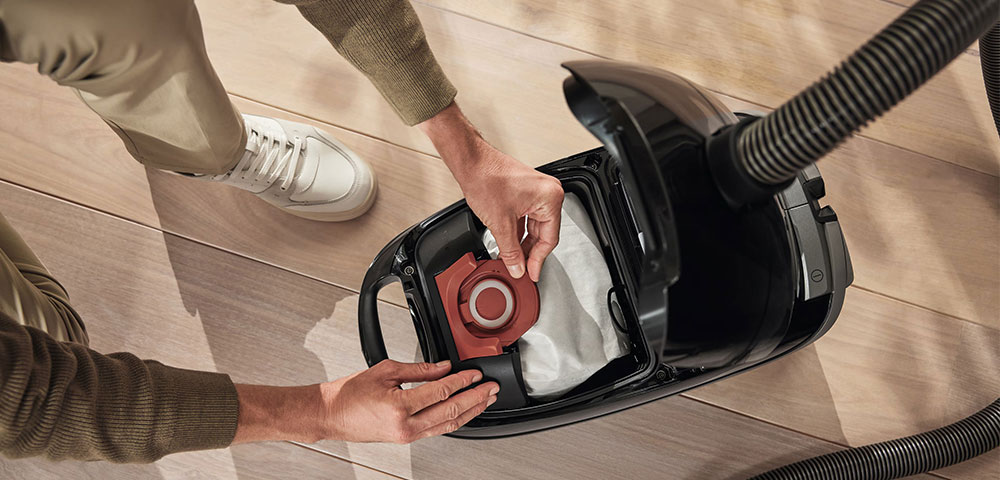 Με την πρωτοποριακή τεχνολογία φίλτρου και τις κατάλληλες σακούλες μπορείτε να απολαμβάνετε υγιεινή σε όλους τους χώρους του σπιτιού σας – με απόδοση φίλτρου 99,99%. Με το σύστημα ComfortFit είναι πανεύκολη η τοποθέτηση σακούλας και με το κλείστρο ασφαλείας η σκόνη παγιδεύεται στο εσωτερικό επιτρέποντας υγιεινή αλλαγή της σακούλας. Επιπλέον, οι νέες σακούλες ηλεκτρικής σκούπας είναι κατασκευασμένες από τουλάχιστον 80% ανακυκλωμένο υλικό.