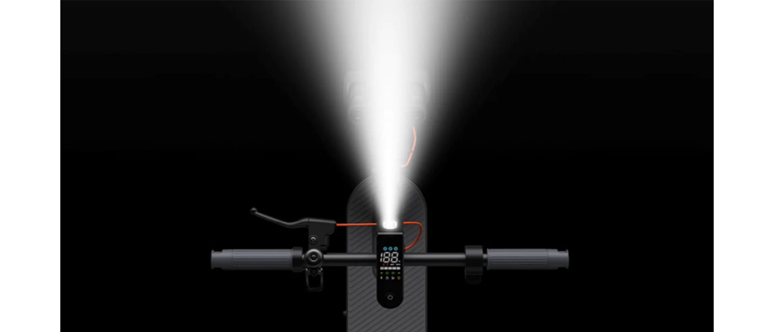 Το Xiaomi Electric Scooter 5 Plus διαθέτει έξυπνα φώτα που προσαρμόζονται στο φως του περιβάλλοντος. Ο προβολέας μεγάλης φωτεινότητας με εμβέλεια 10m ενεργοποιείται αυτόματα τη νύχτα, ενώ το πίσω φως φρένου προειδοποιεί πεζούς και οχήματα για μεγαλύτερη ασφάλεια.