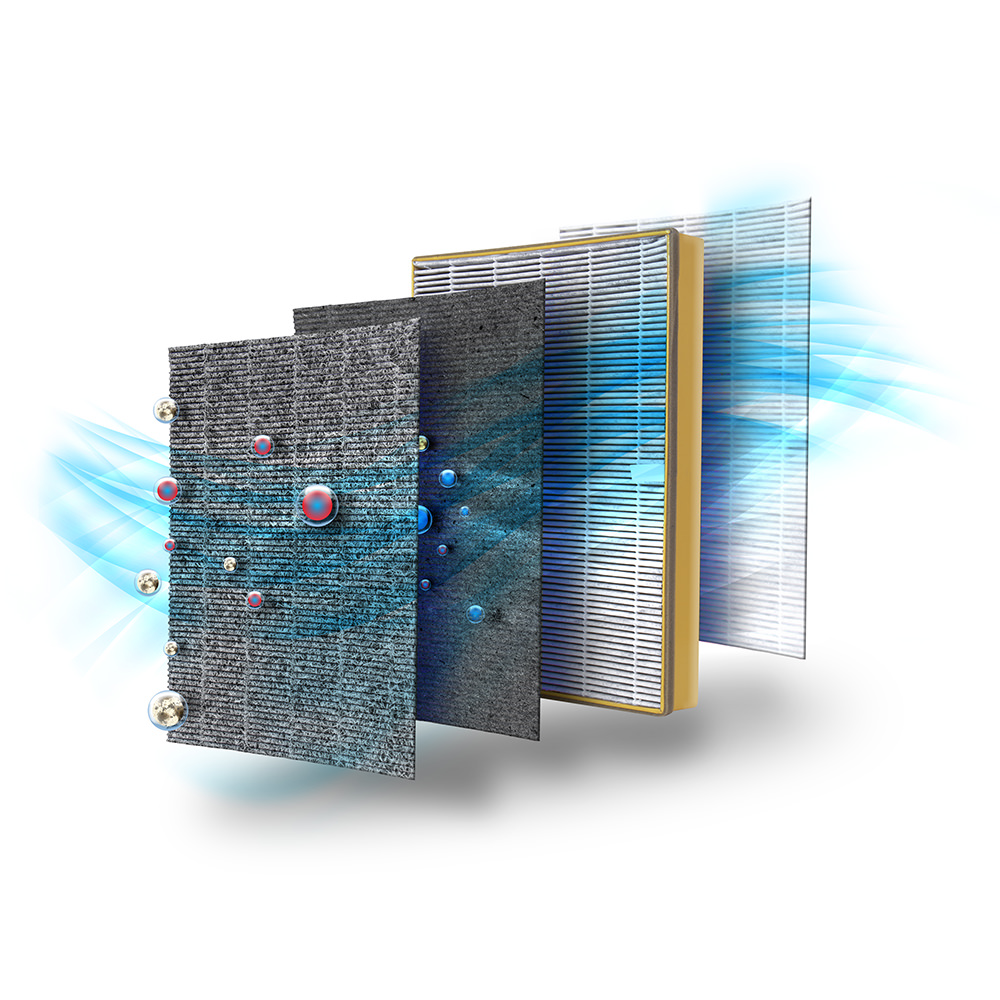 Αντιμετωπίστε δραστικά την σκόνη, γύρη και στοιχεία της εξωτερικής ρύπανσης στο περιβάλλον του σπιτιού σας με την βοήθεια των 4 σταδίων φιλτραρίσματος. Ο αέρας διέρχεται από τα επιμέρους στάδια που συγκρατούν μεγάλο ποσοστό των βλαβερών σωματιδίων, καταπολεμώντας αλλεργίες και ασθένειες και δημιουργώντας την καθαρή & υγιεινή ατμόσφαιρα που επιθυμείτε.