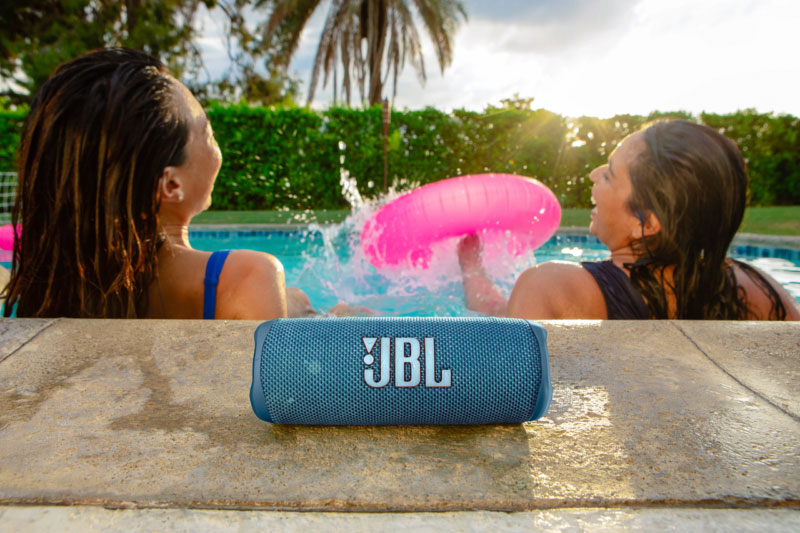 JBL Flip 6 Bluetooth Speaker Blue με τον αδιάβροχο σχεδιασμό του, μπορείτε να ροκάρετε ακόμα και σε περίπτωση βροχής.