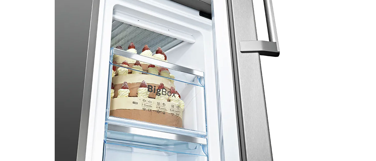 Το BigBox είναι ένα μεγαλύτερου βάθους συρτάρι για την πρακτική φύλαξη συσκευασιών με κατεψυγμένα ή μεγάλου όγκου τρόφιμα πχ τούρτες. Είτε πρέπει να οργανώσετε το φαγητό για παιδικά γενέθλια, είτε να καταψύξετε μια γαμήλια τούρτα, στο BigBox θα βρείτε αρκετό χώρο για μεγάλων διαστάσεων κατεψυγμένα είδη.