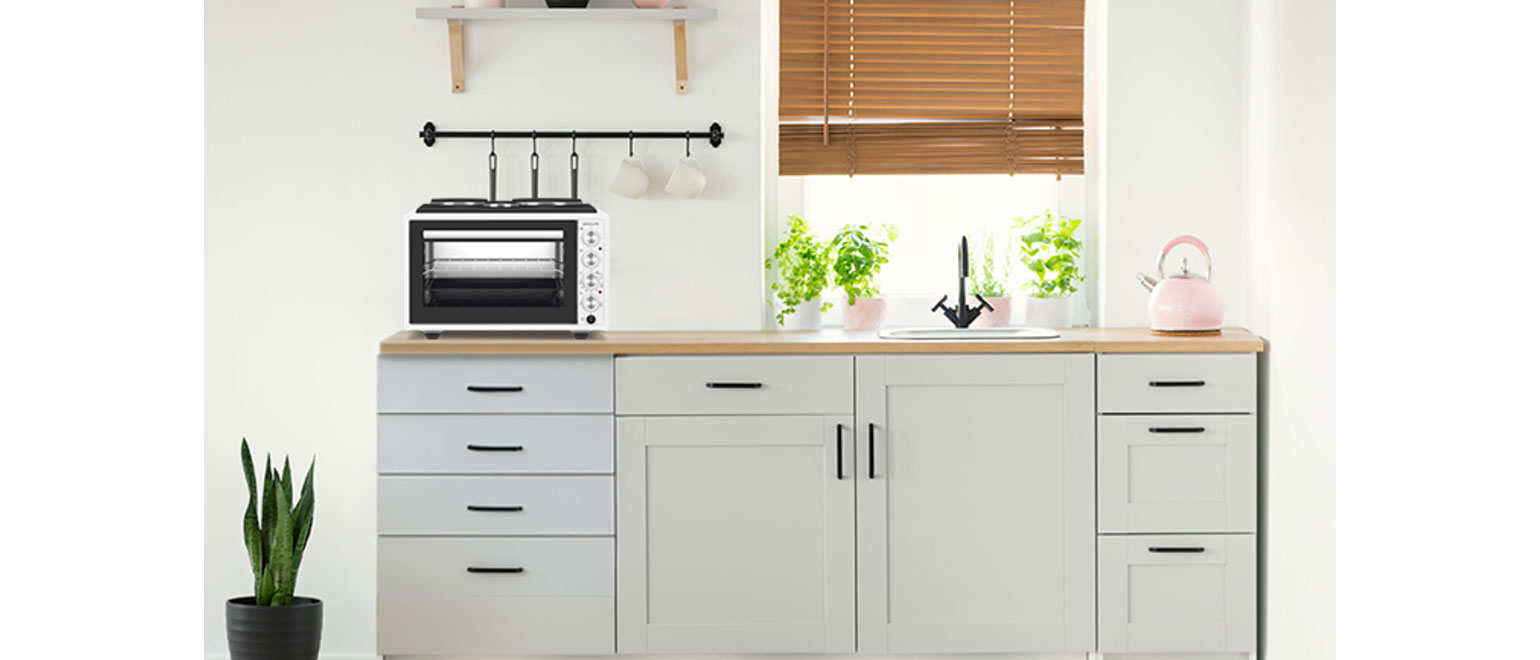 Με το compact μέγεθός του, αυτό το φουρνάκι ταιριάζει άψογα σε κάθε χώρο, είτε πρόκειται για μικρές κουζίνες είτε για περιορισμένους χώρους. Το μοντέρνο και κομψό design του προσδίδει μια αίσθηση στυλ και αρμονίας σε κάθε περιβάλλον, κάνοντάς τον όχι μόνο πρακτικό αλλά και μία εντυπωσιακή προσθήκη στη διακόσμηση της κουζίνας σας