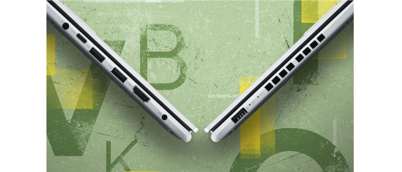 Το Vivobook 15 σε κρατάει πάντα συνδεδεμένο με τις πλήρεις θύρες εισόδου/εξόδου που διαθέτει. Έχει θύρα USB-C® 3.2 Gen 1, δύο θύρες USB 3.2 Gen 1 Type-A, μια θύρα USB 2.0, έξοδο HDMI® και συνδυασμένη υποδοχή ήχου έτσι μπορείς εύκολα να συνδέσεις όλες τις συσκευές, οθόνες και προβολείς σου.