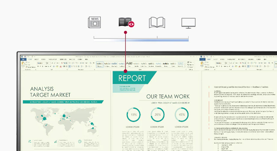 Για τη μείωση της καταπόνησης των ματιών και το πιο ξεκούραστο διάβασμα εγγράφων στην οθόνη, η λειτουργία ανάγνωσης προσαρμόζει τη θερμοκρασία χρώματος και δημιουργεί φωτεινότητα παρόμοια με αυτήν του χαρτιού. *Οι εικόνες αποτελούν αναπαράσταση για την καλύτερη κατανόηση της λειτουργίας. Ενδέχεται να υπάρχει διαφορά σε σχέση με την πραγματική χρήση.