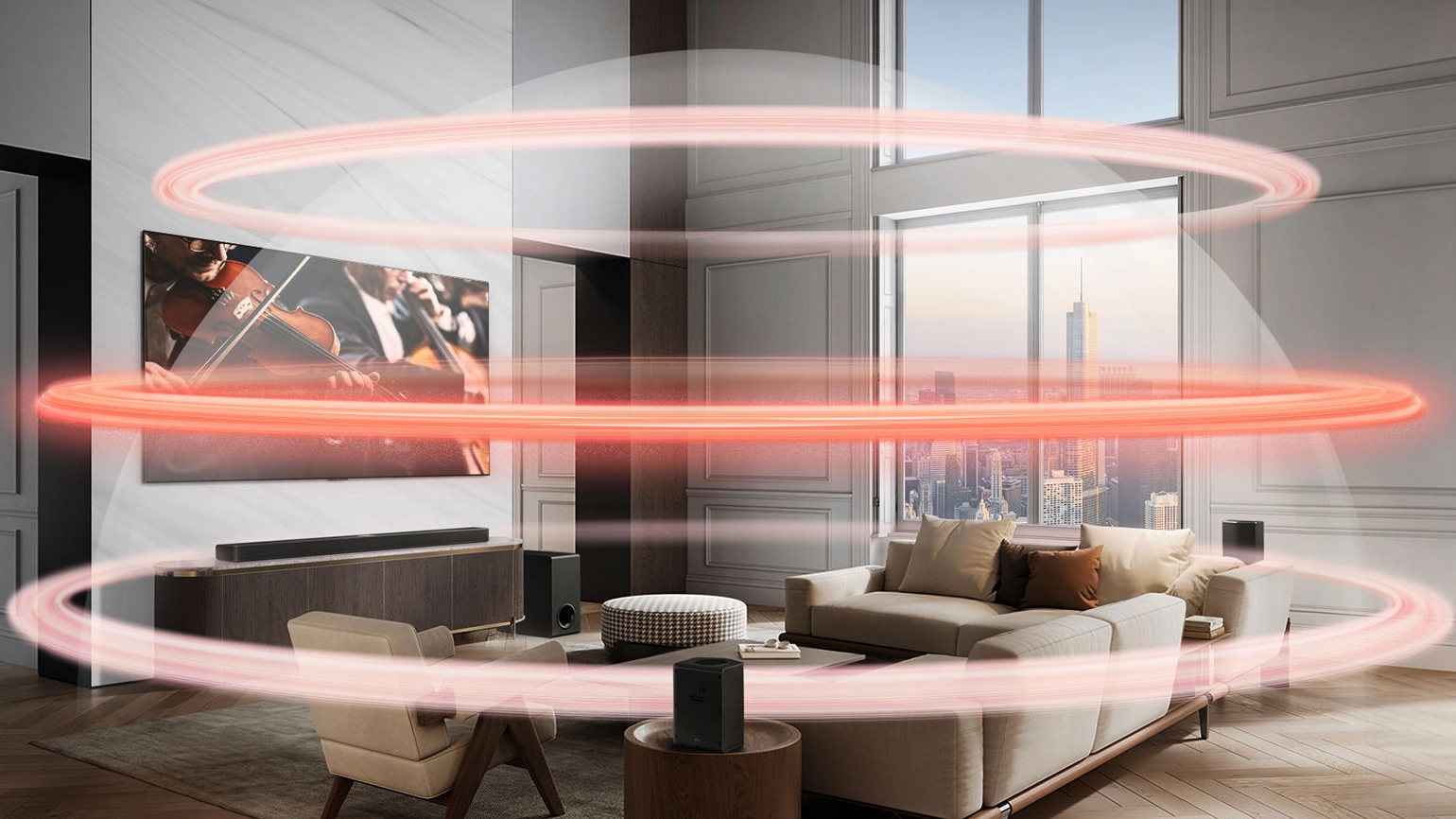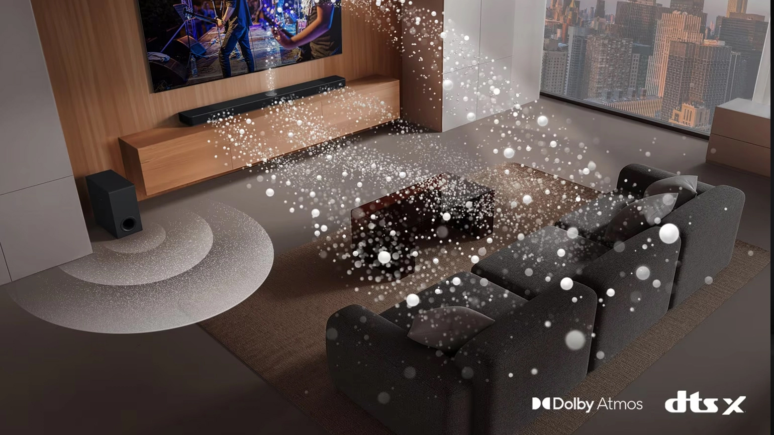 Γίνε μέρος της σκηνής με ρεαλιστικά ηχητικά τοπία Dolby Atmos και DTS:X, από ένα ηχοσύστημα surround 400 W 3.1.1ch και ένα subwoofer.Πολυκάναλη ηχητική εμπειρία