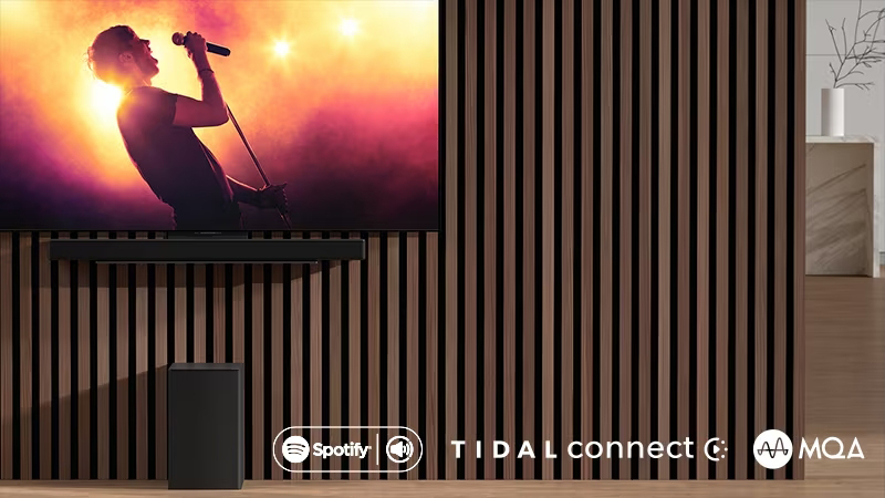 Παίξε μουσική στο Sound Bar σου. Είναι συμβατό με τα Spotify και Tidal Connect. Το LG Sound Bar υποστηρίζει το MQA (Master Quality Audio) που παρέχει ήχο υψηλής ποιότητας μέσω σύνδεσης Bluetooth/Wi-Fi.
