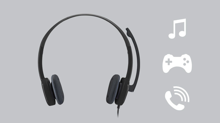 Ακουστικά Logitech H151 με ψηφιακό στερεοφωνικό ήχο, περιστρεφόμενο μικρόφωνο και ρυθμιζόμενο στήριγμα κεφαλής.