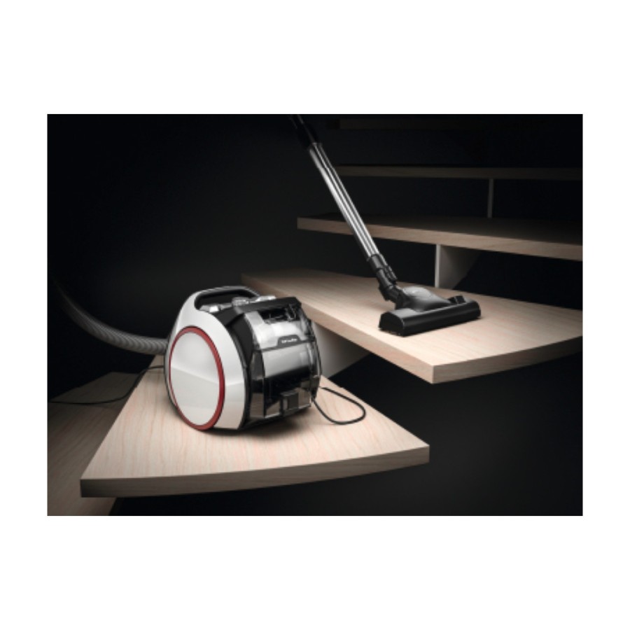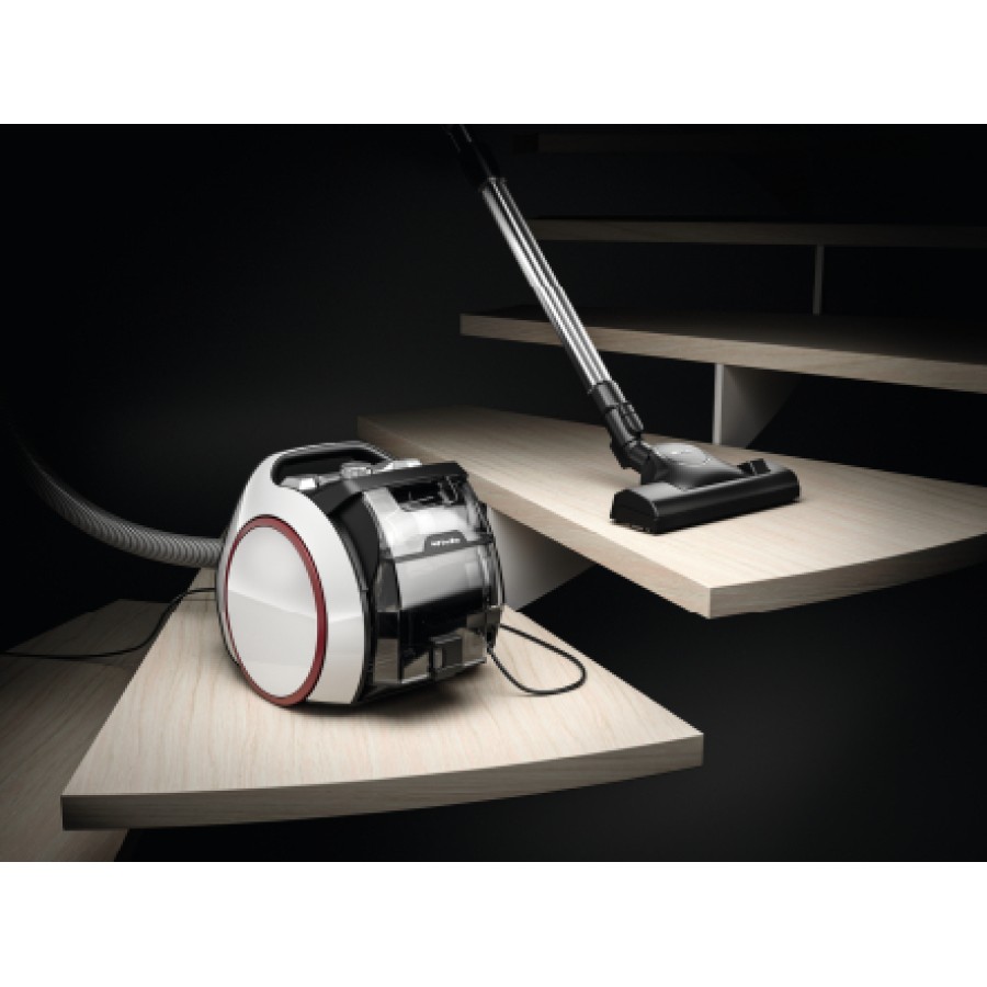 Η ηλεκτρική σκούπα χωρίς σακούλα Boost CX1 της Miele παραμένει ασφαλής και ασφαλισμένη σε οποιοδήποτε σκάλα ή σκαλοπάτι χάρη στο μικρό της μέγεθος. Οι ρόδες στα πλαϊνά της συσκευής αποτρέπουν την ανατροπή της και προσφέρουν ασφάλεια. Αυτό σημαίνει ότι ανά πάσα στιγμή μπορείτε να σταθμεύσετε την ηλεκτρική σας σκούπα, αν χρειάζεται να ασχοληθείτε με κάτι άλλο.