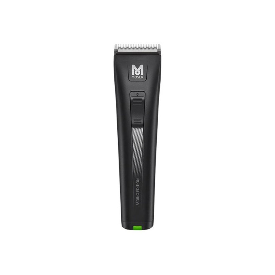 Καινοτόμος λεπίδα fading από ανοξείδωτο ατσάλι ιδανική για σβησίματα. Εύκολα αφαιρούμενα σετ λεπίδων επιτρέπει εύκολο καθάρισμα και γρήγορη αλλαγή σε όλα τα προαιρετικά διαθέσιμα σετ λεπίδων Moser.Φορτιστής μπαταρίας & κουρευτική μηχανή σε 1