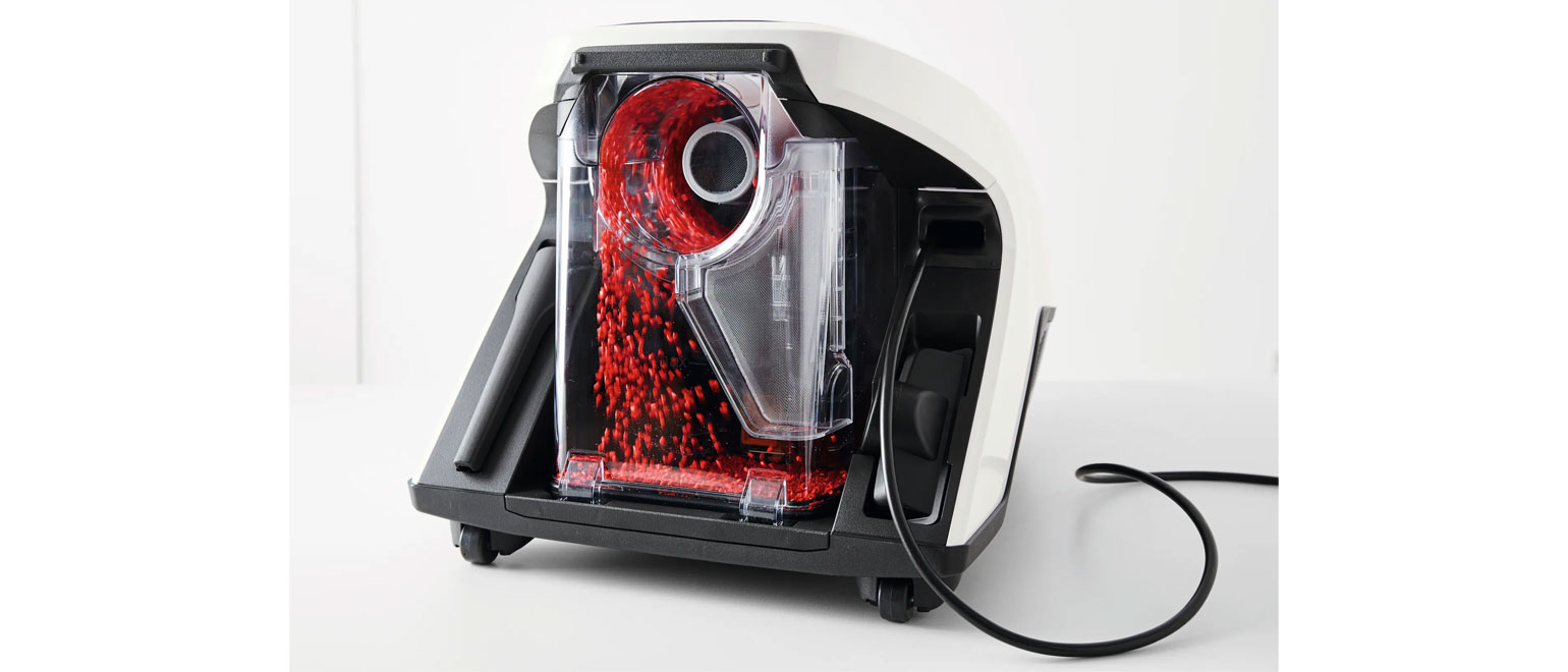 Η τεχνολογία Vortex παράγει υψηλό ρυθμό ροής, άνω των 100 km/ώρα. Σε συνδυασμό με το ειδικά σχεδιασμένο αεροστεγές πέλμα και την αεροδυναμική ροή του αέρα, η ηλεκτρική σκούπα χωρίς σακούλα επιτυγχάνει κορυφαία απόδοση καθαρισμού. Έτσι διασφαλίζεται ο αποτελεσματικός διαχωρισμός των σκουπιδιών από τη λεπτή σκόνη. Τα σκουπίδια καταλήγουν στο διάφανο δοχείο σκόνης, ενώ η λεπτή σκόνη σε άλλο δοχείο με φίλτρο λεπτής σκόνης.