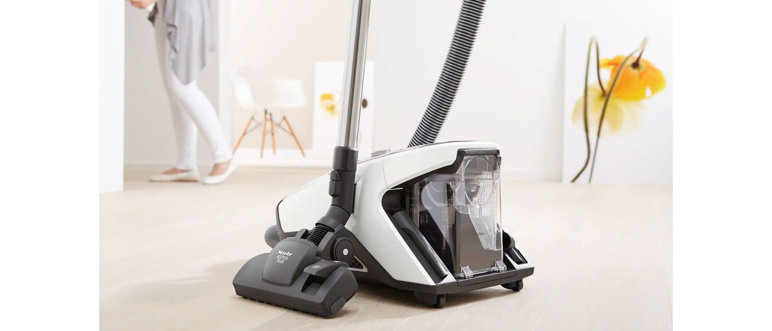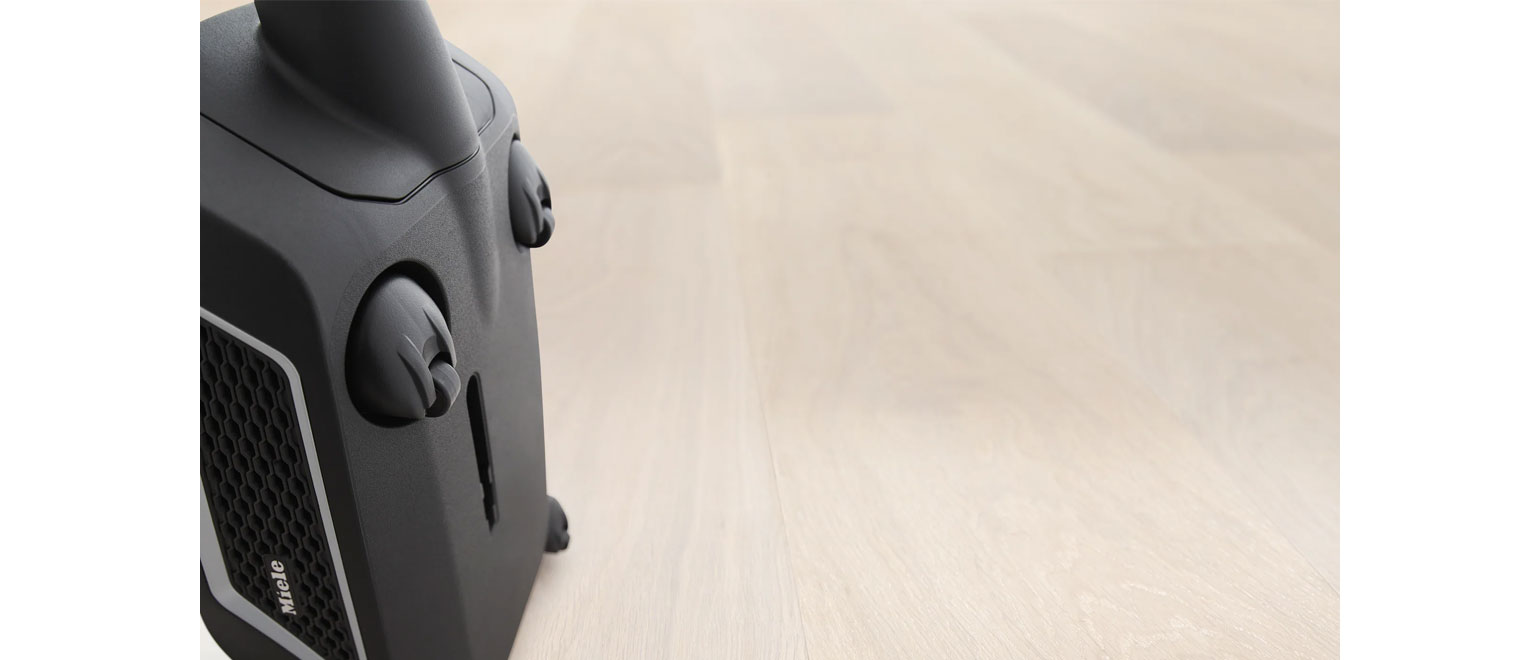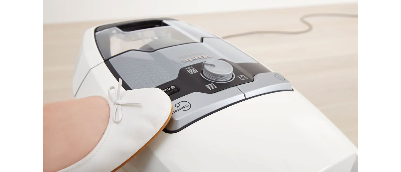Το καλώδιο σε όλες τις σκούπες δαπέδου της Miele μπορεί να τυλιχτεί εύκολα με έναν διακόπτη ποδός, χωρίς να χρειάζεται να σκύβετε. Οι ηλεκτρικές σκούπες Compact C2, Complete C3 και Blizzard CX1 διαθέτουν επίσης μια λειτουργία με πλήκτρο αφής που επιτρέπει το τύλιγμα όλου του καλωδίου με ένα μόνο πάτημα.