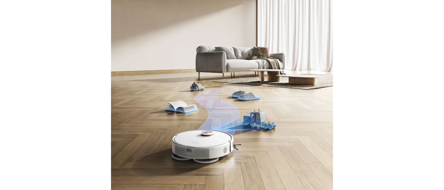 Εξοπλισμένη με σύστημα αποφυγής εμποδίων ευρείας περιοχής, με οπτικό πεδίο 129° που επιτρέπει στη σκούπα να ανιχνεύει χαμηλά εμπόδια. Πλοηγείται με ακρίβεια, αποφεύγοντας συγκρούσεις ακόμα και σε συνθήκες χαμηλού φωτισμού.