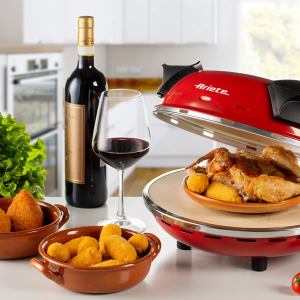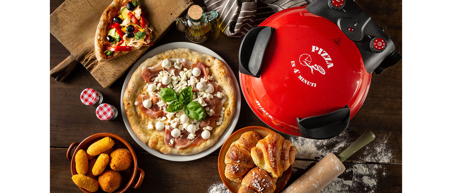 Ο φούρνος 909 με ισχύ 1200 Watt και 5 επίπεδα θερμοκρασίας, ψήνει από πίτσες, focaccia, κρουασάν για το γλυκό πρωινό σας, πίτες, μπισκότα και αρτοσκευάσματα απευθείας πάνω στην πυρίμαχη πέτρα.