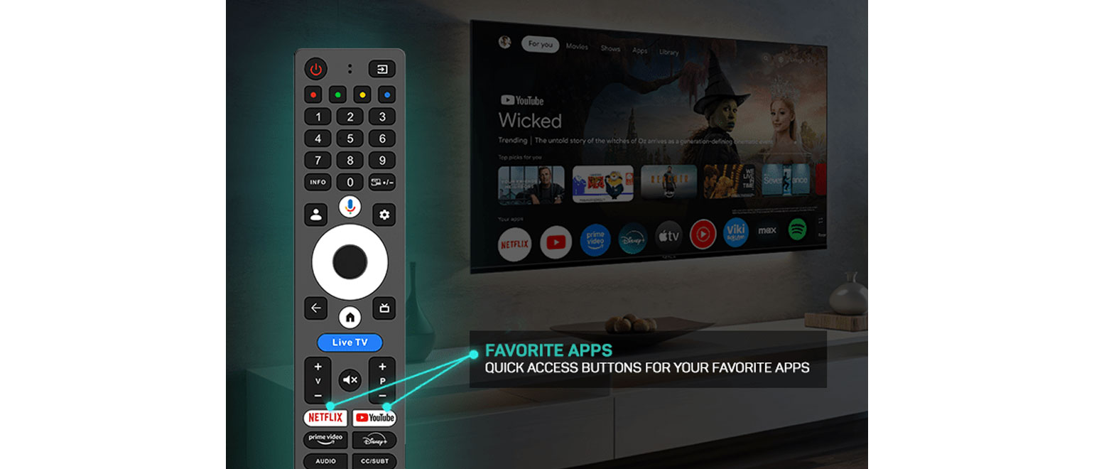 Το κομψό τηλεχειριστήριο Bluetooth εξασφαλίζει εύκολη πλοήγηση και άμεσο έλεγχο. Με το πάτημα ενός κουμπιού, μπορείς να ανοίξεις απευθείας τις αγαπημένες σου εφαρμογές – για μια πραγματικά απρόσκοπτη εμπειρία χρήσης.