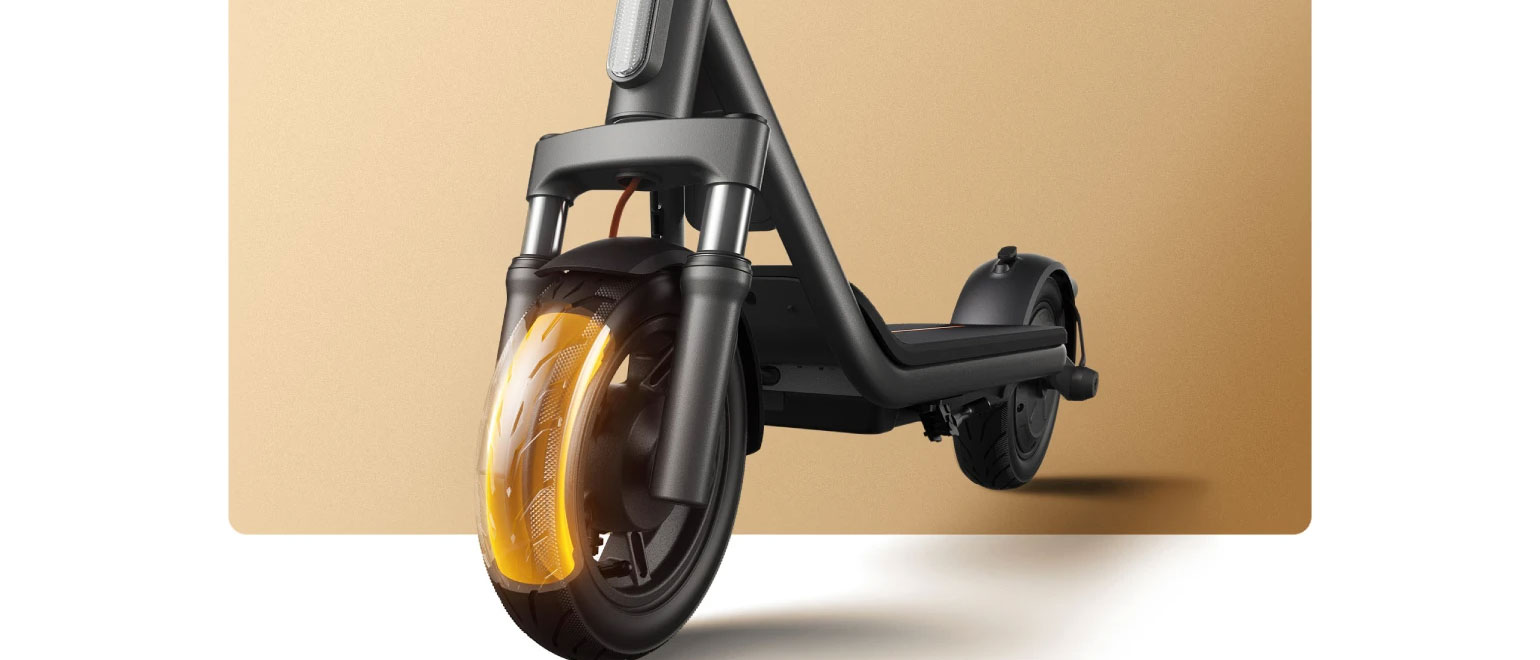 Τα 10" ελαστικά αντιμετωπίζουν εύκολα σαμαράκια, χαλίκι και ανώμαλο δρόμο, προσφέροντας σταθερότητα και άνεση.