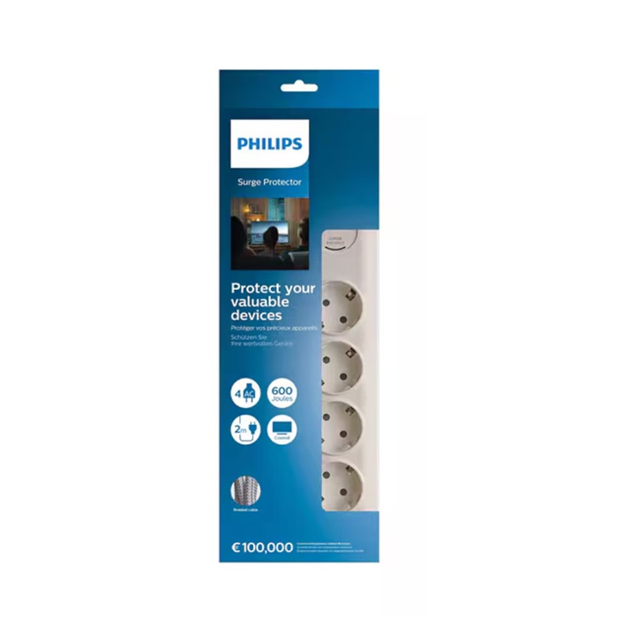 Το Philips SPN7041WA/GRS είναι ένα πολύπριζο ασφαλείας, που έχει σχεδιαστεί για την προστασία των ηλεκτρικών / ηλεκτρονικών συσκευών. Διαθέτει 4 γειωμένες πρίζες σούκο και πλεκτό καλώδιο 2 μ. Είναι σχεδιασμένο για να προστατεύει τον εξοπλισμό σου από ηλεκτρικές υπερτάσεις, διακόπτοντας αυτόματα τη λειτουργία του συστήματος κατά τις διαδοχικές υψηλές διακυμάνσεις ρεύματος.