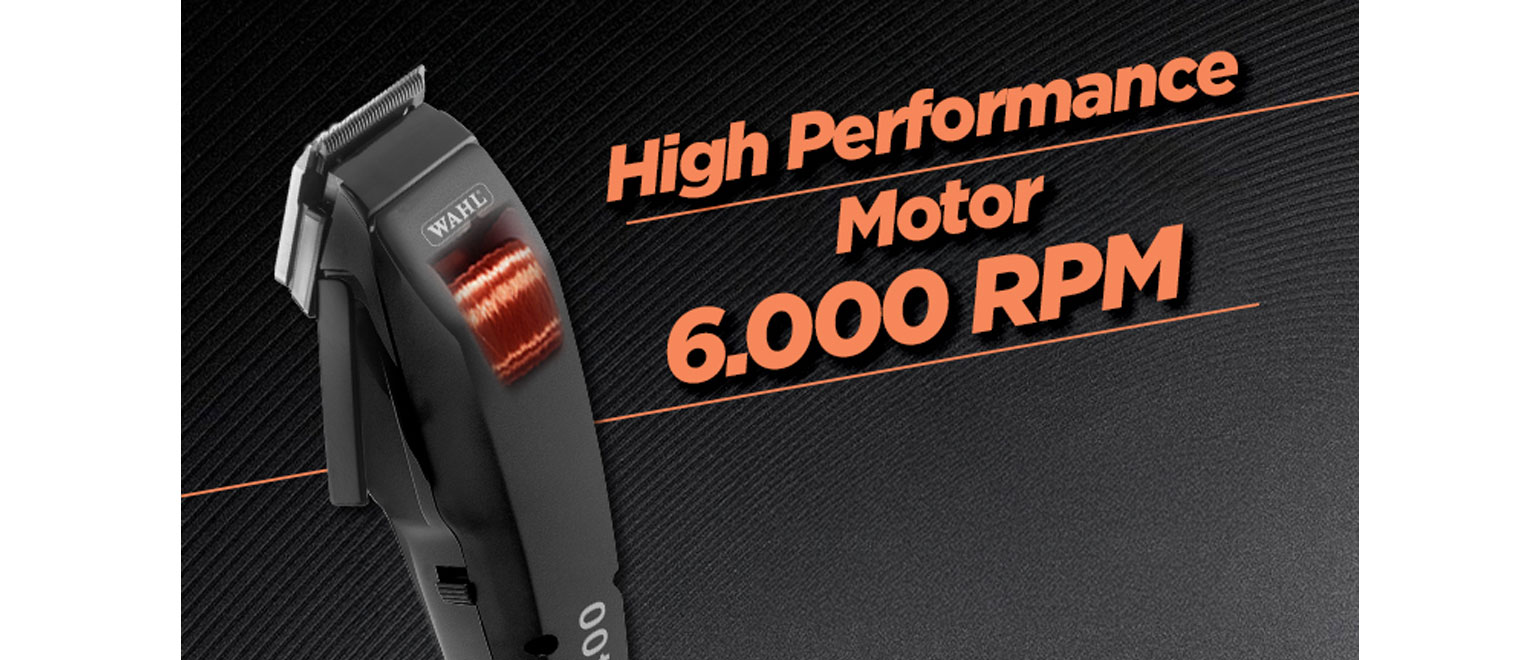 Η WAHL 1400 διαθέτει ηλεκτρομαγνητικό μοτέρ 6.000 rpm 10 W, που προσφέρει σταθερή ισχύ και υψηλή απόδοση.. Έτσι το αποτέλεσμα παραμένει σταθερά επαγγελματικό, ακόμα και μετά από παρατεταμένη χρήση.