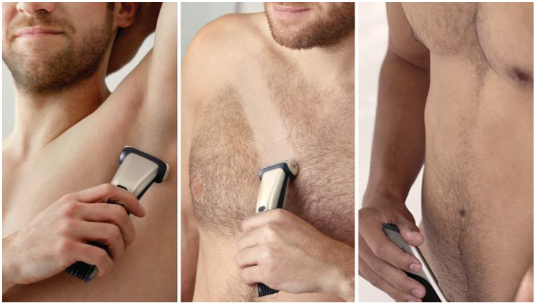 Άνετο ξύρισμα και τριμάρισμα σε όλο το σώμα. Εύκολη εναλλαγή μεταξύ λειτουργιών ξυρίσματος και τριμαρίσματος, και προσαρμογή της ρύθμισης μήκους χωρίς αλλαγή εξαρτημάτων. Σχεδιασμένο ως μια ασφαλής και άνετη λύση περιποίησης για την πλάτη, τους ώμους, το στήθος, την κοιλιά, τις μασχάλες, χέρια, τη βουβωνική περιοχή και τα πόδια.Ξυριστική μηχανή περιγράμματος 4-D