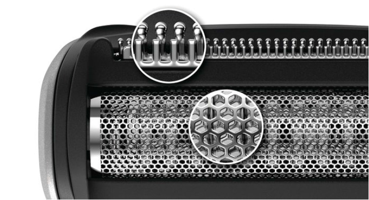 Η ξυριστική κεφαλή διαθέτει κατοχυρωμένες με δίπλωμα ευρεσιτεχνίας στρογγυλεμένες άκρες και ένα υποαλλεργικό πλέγμα για προστασία του δέρματός σου κατά τη διάρκεια του ξυρίσματος. Τα τρίμερ διπλής κατεύθυνσης κόβουν τις πιο μακριές τρίχες, ενώ το πλέγμα εξασφαλίζει βαθύτερο αποτέλεσμα.