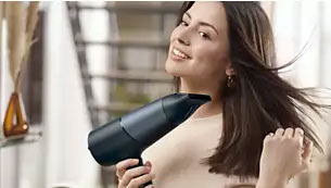 Η πιο ισχυρή ροή αέρα των 2300W κάνει το στέγνωμα 20%** πιο γρήγορο, ενώ παράλληλα προστατεύει τα μαλλιά σας.