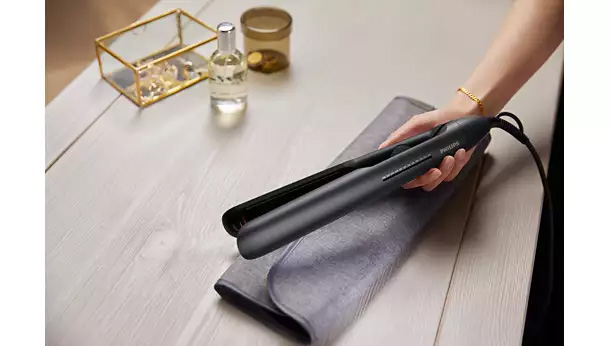 Η ισιωτική συσκευή χρησιμοποιεί κεραμικές πλάκες εμποτισμένες με αργανέλαιο για γρήγορο και εύκολο φορμάρισμα, με κίνηση ολίσθησης που προσφέρει απόλυτα απαλή αίσθηση και εμφάνιση.
